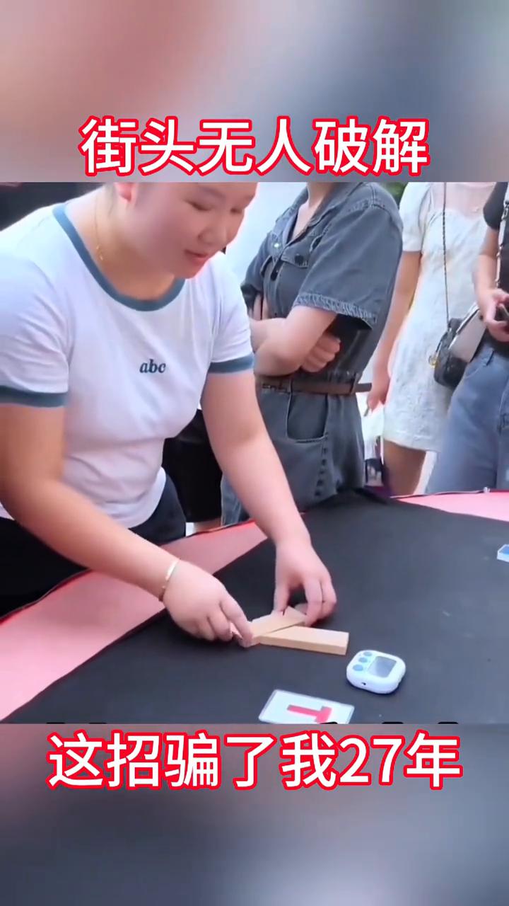 街头无人破解,这招骗了我27年。 看会了吧?我捣乱了。等一下,别着急,计时开始,一分钟把它拼出来送礼物大礼包,一份零食大礼包就可以带走。还有40多秒,别着急,这个肯定不对。这样肯定不对,差太远了。所以为什么我说这东西叫眼睛,会了手不会,一看就会,一拼就会?我还特意问了你是不是看会了?这肯定不对。应该是这样,随便拼,一共只有4块。 这也不对,我看到两个小的在上。不行,还有10秒钟了。不对,你还觉得简单吗?我告诉你,刚看到这个东西的时候就是弱智,谁都会拼,一看就会,但是拼起来真的没那么简单。这是一个很神奇的游戏,大部分朋友都是眼睛看会了,但手却不会。接下来就来解密一下这个游戏到底如何去操作。 这四个小木块叫做四小板,可以拼出很多形状。接下来就来拼一下视频当中的梯子形。在拼之前大家都会觉得很简单,但上手之后却会发现并没有那么容易。这四个小木块无论怎么摆放都无法拼成一个完美的梯子形。这个图案看起来和梯子形很像,但仔细观察是错误的。 不过这个时候可以换另一种思维来摆放这四个模块。看一下,这个小模块带一个直角,这个直角肯定有它另一个用途。可以把带有直角木块的斜边和下方的小木块的斜边对齐。现在还剩下两个小木块,分别把这两个小木块放在两端,这样看起来是不是就成为一个完整的梯子形了? 不过把它打乱之后可以在一分钟之内将它再次拼成吗?可以尝试一下,这四个看似简单的小木块其实可以拼成一百种图案。接下来再来找另一个图案进行尝试,就是六十八号这个图形。这个图形有一个明显的特点,就是上面有三个角。下面就可以把这几个木块带有角的方向向上去摆放。 把这两个较大的木块长边对齐,然后把两个小木块分别放在左右两边试一下。这样摆放的图案看起来和图片上的并不相同。这个时候就需要进行调整,可以把这个大的模块转一个方向,然后再把这个三角形的小模块放在中间的位置。现在再仔细观察一下和图片上的图案是不是完全一致了? 没错,这四个小木块看似简单,但实际操作起来却有一定的难度。小册子里面有一百种图案,有简单的也有复杂的。这个游戏非常适合小朋友来挑战,可以开发思维,还可以锻炼动手能力。欢迎大朋友和小朋友们都来挑战一下这个。可以开发思维的小游戏。