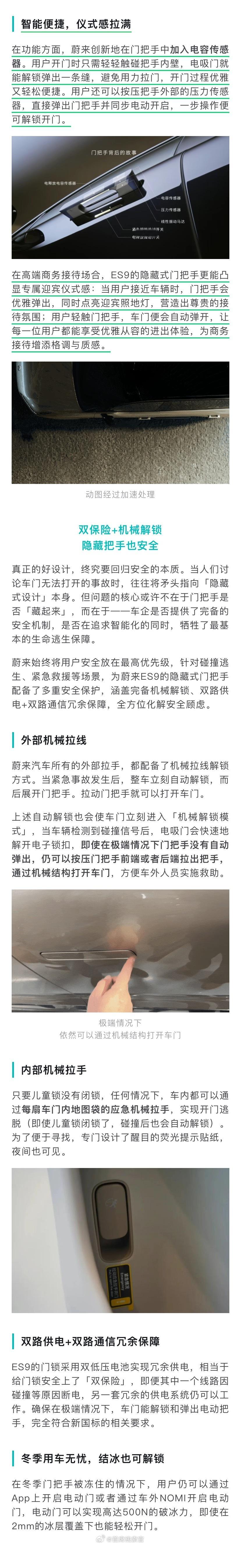 大家最关心的安全问题,ES9 这个隐藏式门把手等于是有三种开门触发方式。