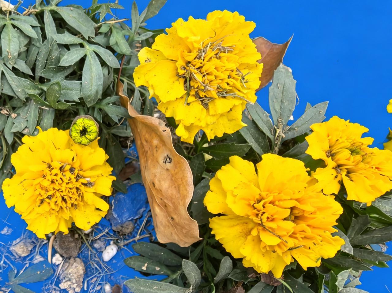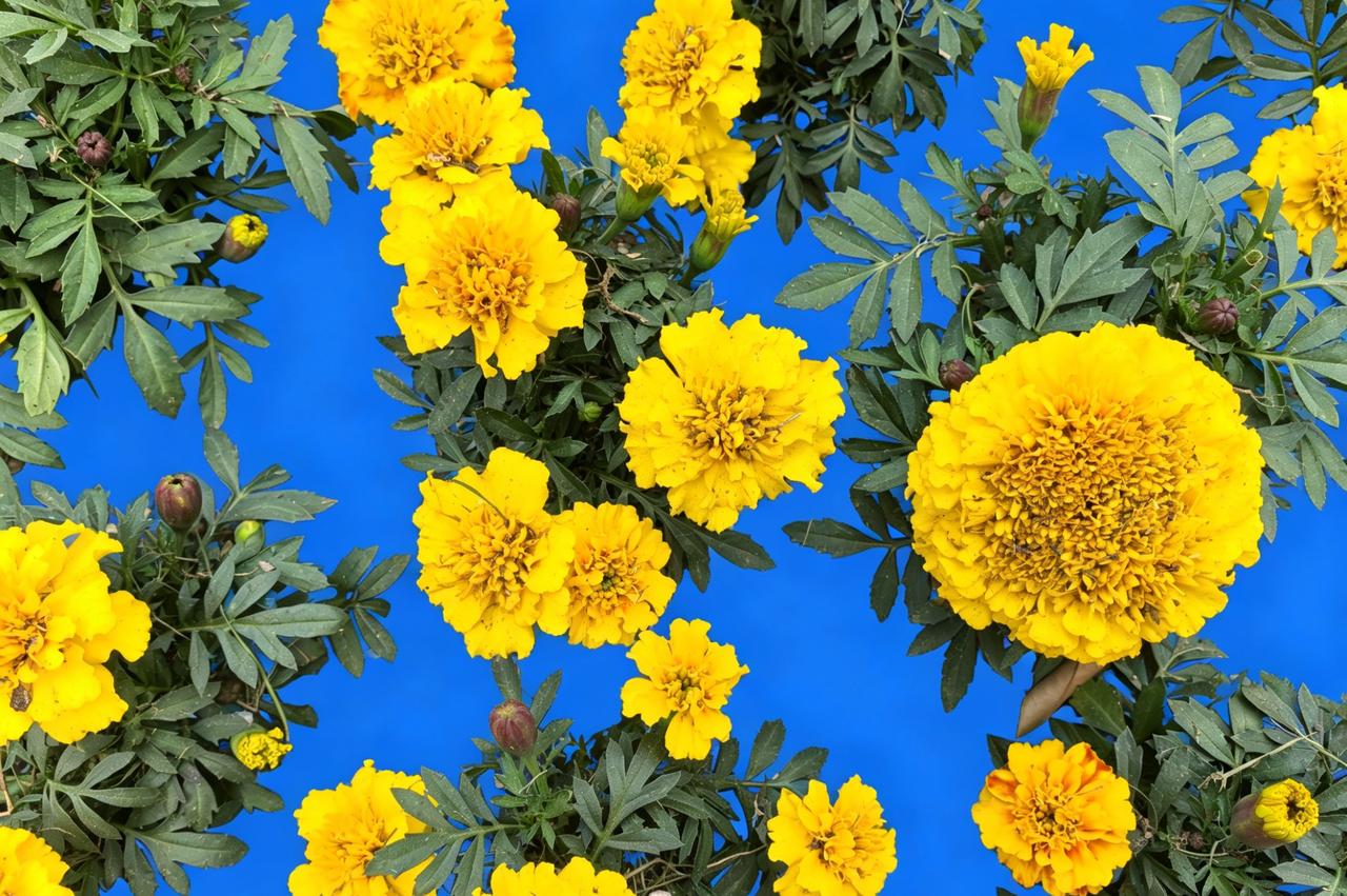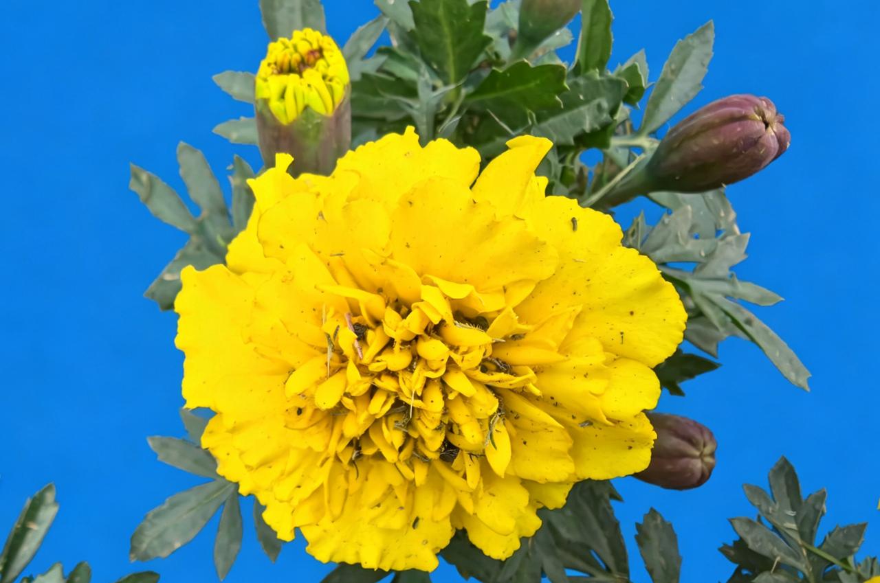 一朵大黄花在蓝天下盛开。