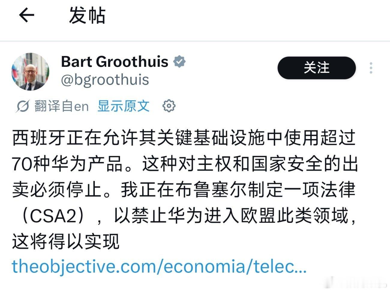 西班牙国家情报中心于这几天认证了70余款华为产品进入西班牙,用于基础建设和国家重要行业,欧盟有官员正试图阻止这件事。