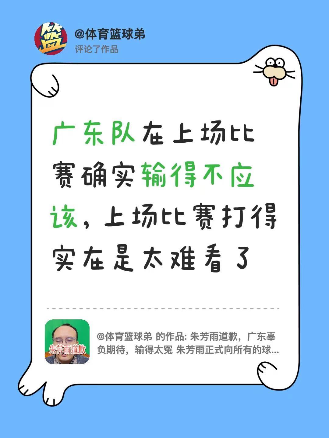 我评论了@体育篮球弟 的作品:广东队在上场比赛确实输得不应该,上场比赛打得实在是