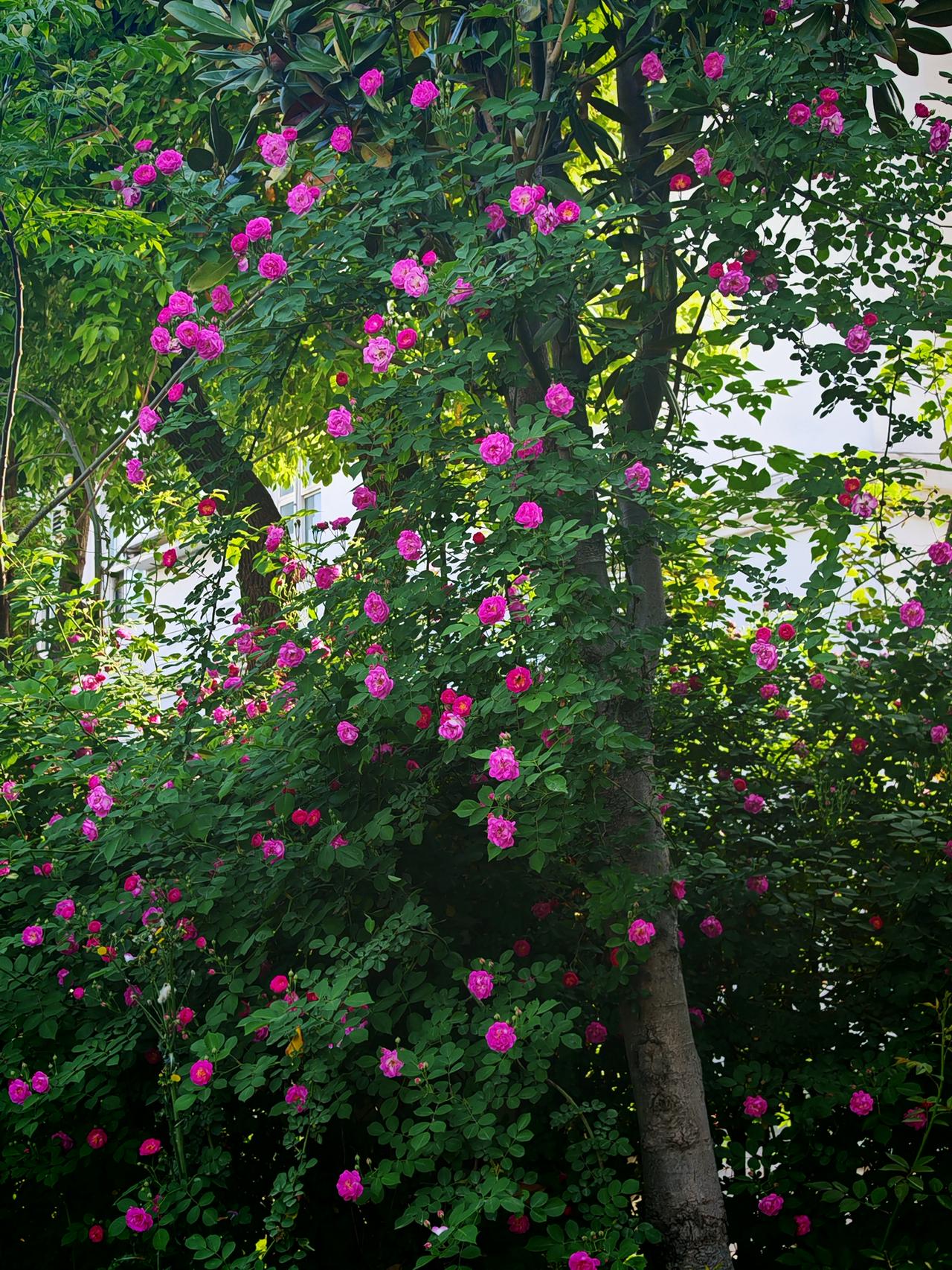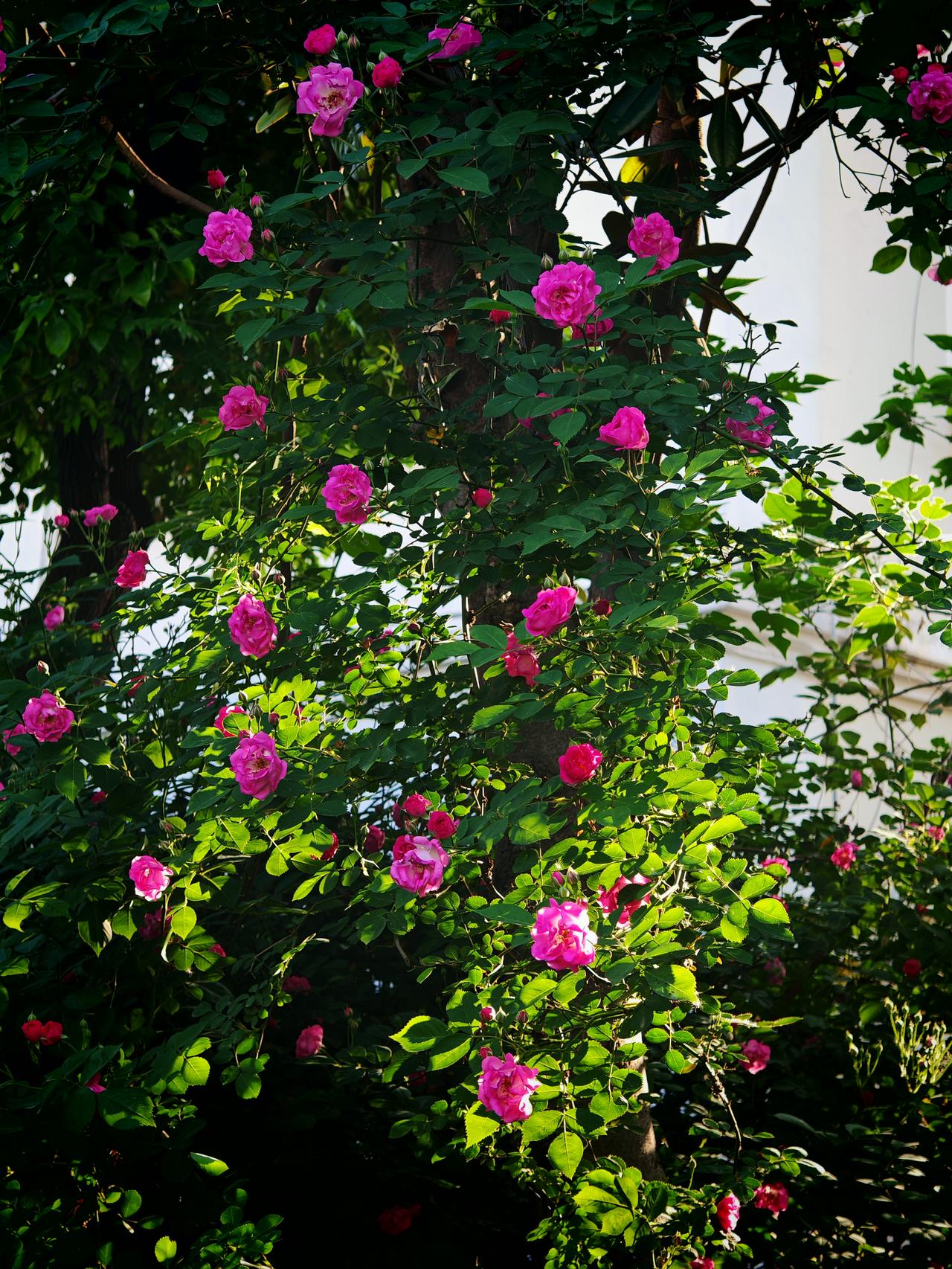 蔷薇花确实好看,那暮春时节,一墙蔷薇热烈绽放,粉的、白的、红的花瓣层层叠叠,像少女晕染的裙裾,又似散落人间的云霞。阳光洒落,花瓣摇曳,空气里都弥漫着浪漫。 不过,咱可别上手去玩它。蔷薇花虽美,但它枝干上有刺,不小心就会被扎到。而且,欣赏蔷薇花的美,远远看着就好。比如中年女士和蔷薇花墙合影,闭上眼睛闻花香、坐着看书、扎进花丛这些姿势,优雅又有诗意,不用动手去触碰,就能留下美美的照片。让蔷薇花在枝头好好绽放,我们静静欣赏就成。