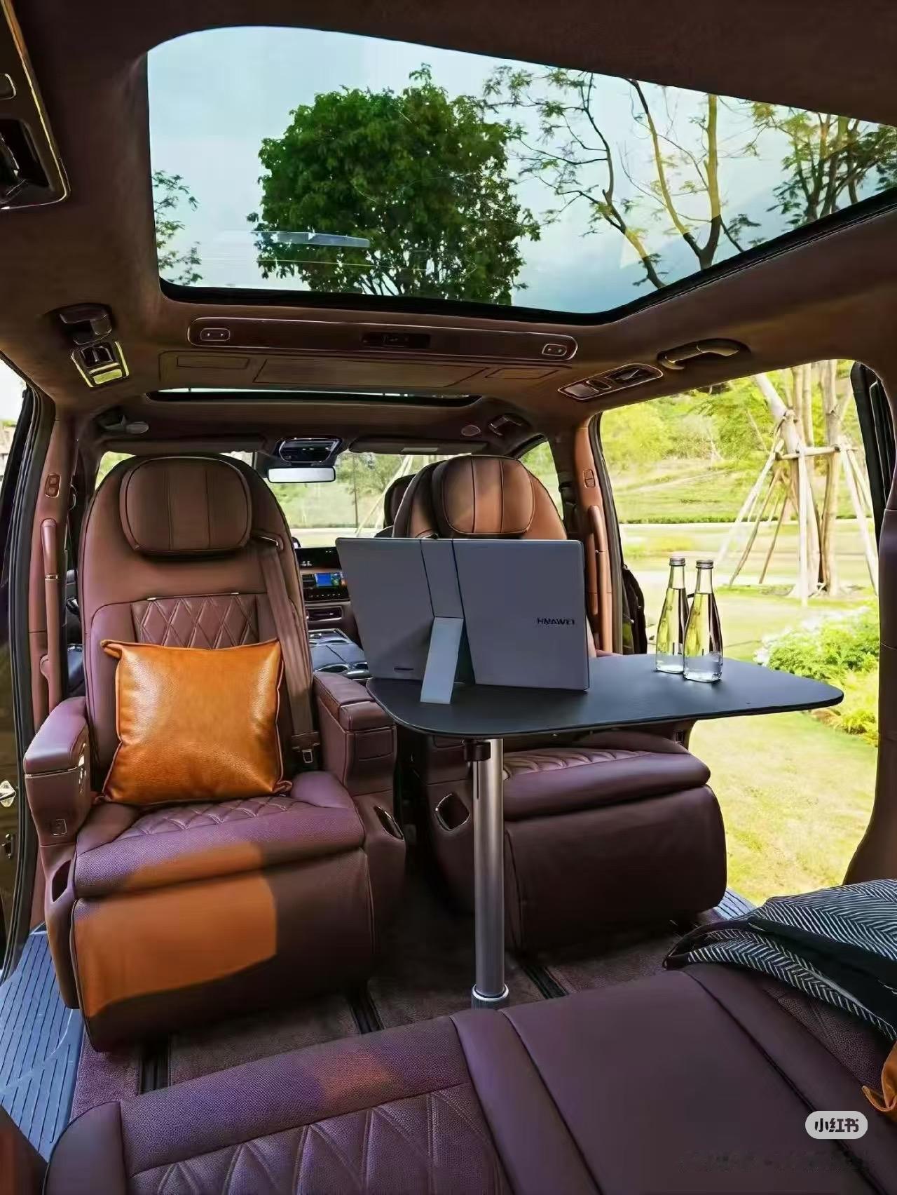 智界V9内饰实拍图,三联屏,第二排座椅能够180度旋转,可以和第三排面对对面坐,华为鸿蒙智行首款MPV,这得卖几十万啊?[捂脸]【图源水印】