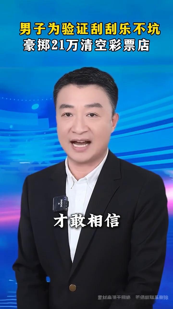 男子为验证刮刮乐不坑,豪掷21万清空彩票店。 一男子为了验证刮刮乐不是坑,直接豪砸21万多现金,把江苏一家彩票店内所有的刮刮乐全部买断。当场开启实测模式,从清晨刮到深夜,全程无休。等到最终结果一出来,现场所有人都惊呆了。这场看似疯狂的举动,也顺带戳破了关于彩票中奖的最后一点幻想。 没人想到,他会愿意花这么多钱,用最直白、最硬核的方式去验证刮刮乐到底是不是坑。他没有遮遮掩掩,直接带着21万元现金走进了当地一家普通的彩票店,开口就跟店主说要把店里所有的刮刮乐都买走,不管是哪种面值、哪种款式,一概不挑,全包了。 店主一开始还以为他是在开玩笑,反复确认了好几遍,直到看到男子把一沓沓现金摆在柜台上,才敢相信这是真的。店主赶紧停下手里的活儿,开始清点店里的刮刮乐。从5元、10元的低面值到20元、50元的高面值,一本本、一摞摞全部打包整理,就连角落里剩下的零散几张也都一并算了进去。 清点完毕后,店主核算了总价刚好是21万多元。男子没有丝毫犹豫,当场结清了全款。随后找了几张桌子,把所有刮刮乐整齐地铺在上面,准备开启这场耗时耗力的实测。 从清晨天刚亮一直刮到深夜,整整一天没挪窝,就连午饭和晚饭都是简单点了外卖,在桌子旁边匆匆吃完,连休息的时间都没有。期间偶尔能刮出几千元的奖项,现场会响起一阵小小的惊呼,直到刮开最后一张刮刮乐才停下了手里的活儿。 结果很快就出来了,大家一起帮忙核算中奖金额,反复核对了好几遍,最终确定21万元的投入,最后兑出来的奖金是13.55万元。这意味着在忙活了整整一天,重复了几千次刮奖动作,熬得身心俱疲之后,他竟亏损了将近8万块钱。 这个结果一出来,现场所有人都惊呆了。原本热闹的场面,瞬间安静下来,大家看着桌上堆积如山的废票还有那叠中奖彩票,一时之间都不知道该说些什么。有人拿出手机把这个结果发到了网上,很快就引发了全网热议。越来越多的人开始讨论这件事。 有人说他太较真,花8万块钱买一个刮刮乐是坑的真相,太不值得。也有人说他清醒又勇敢,用自己的钱戳破了很多人关于彩票中奖的幻想,避免更多人陷入沉迷。对于此事大家有什么看法?