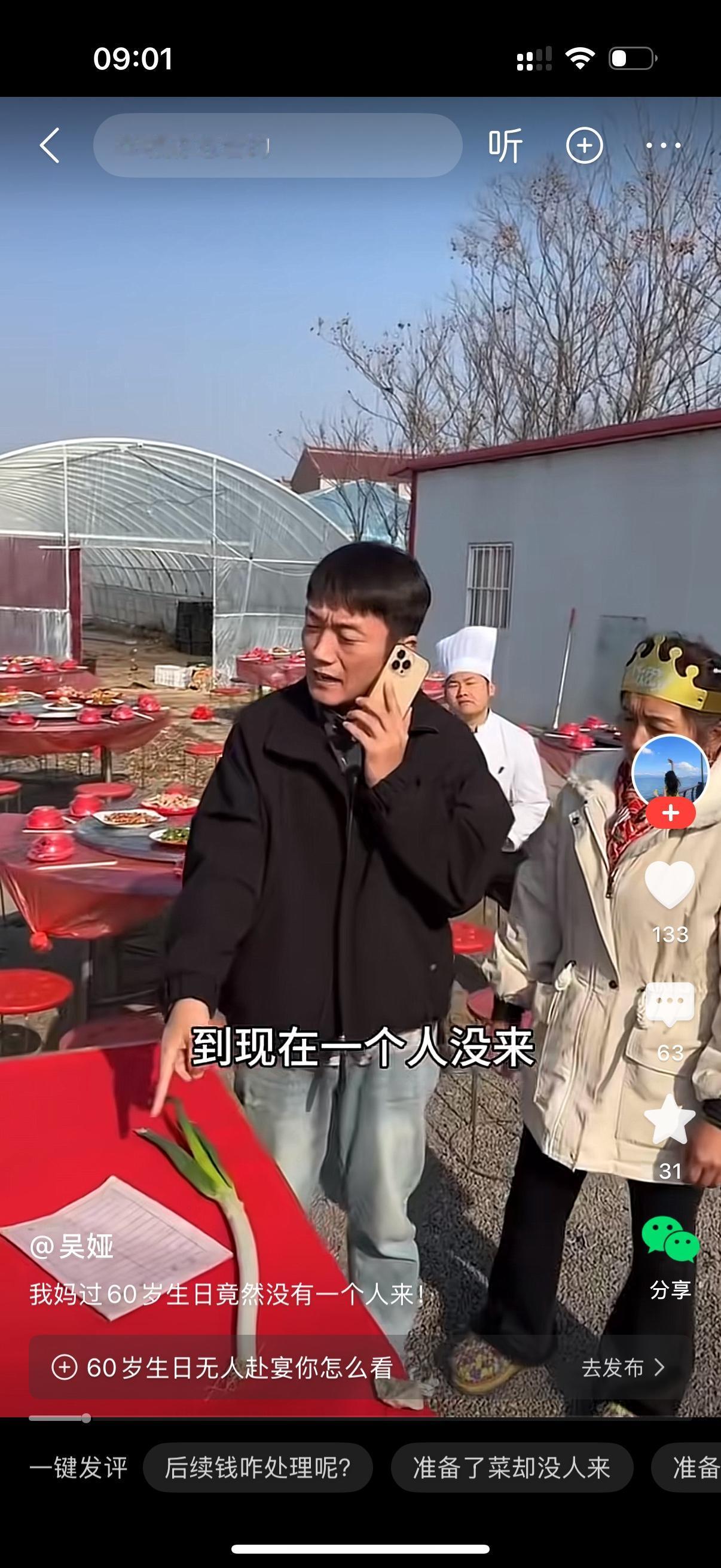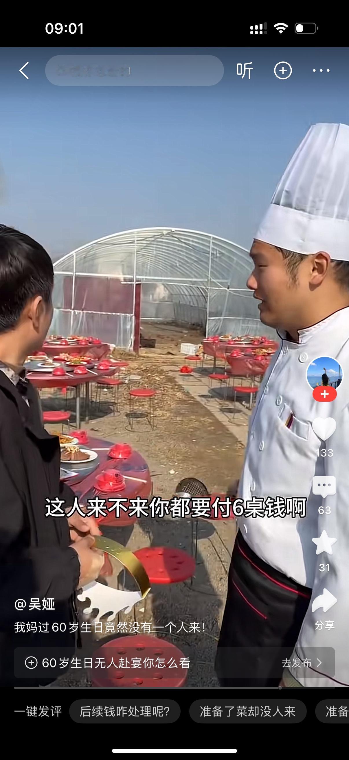男子给母亲办60岁寿宴,张罗了六桌酒席。快要开席了,一个亲朋好友都没来。男子一个一个打电话,要么没人接,接电话的人家也都说有事。男子母亲看到这种情况,埋怨他,你自己丢人也就算了,还连累我。厨师师傅也过来说,客人来不来,你都要付6桌钱啊。男人心里拔凉拔凉的,现在的人怎么一点人情味都没有。