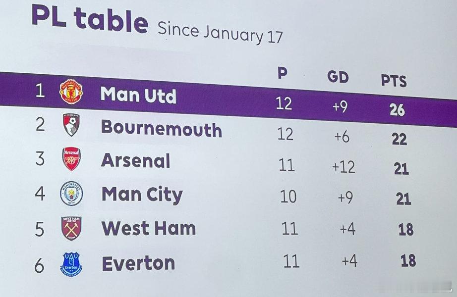 【26/36】切尔西0比1曼联,卡里克接手红魔以来12场英超拿到26分,同期英超最多,比阿森纳和曼城都要多。英超