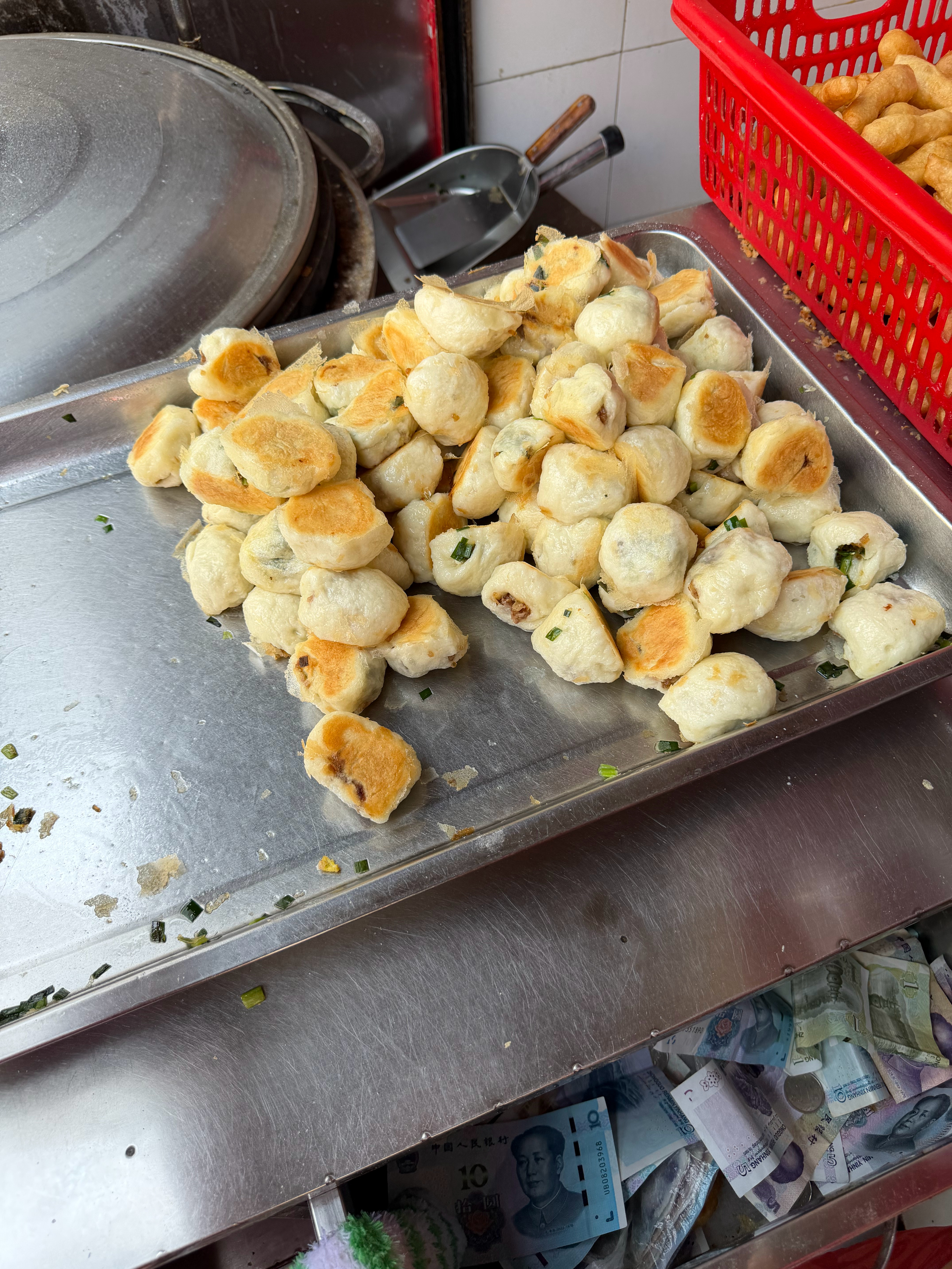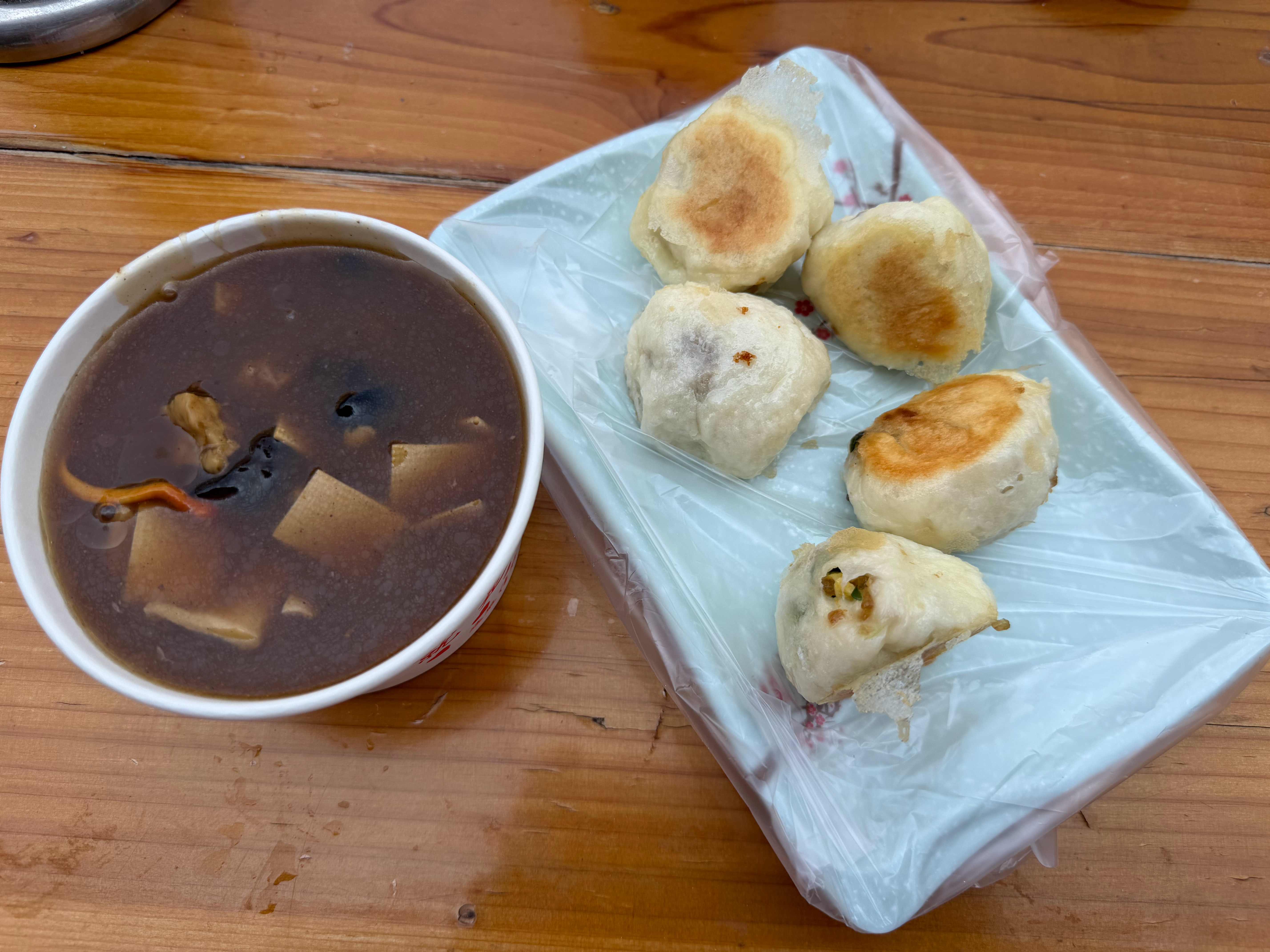 来广东这么多年了,早餐最想吃的还是河南的胡辣汤水煎包,水煎包2元5个,胡辣汤5元