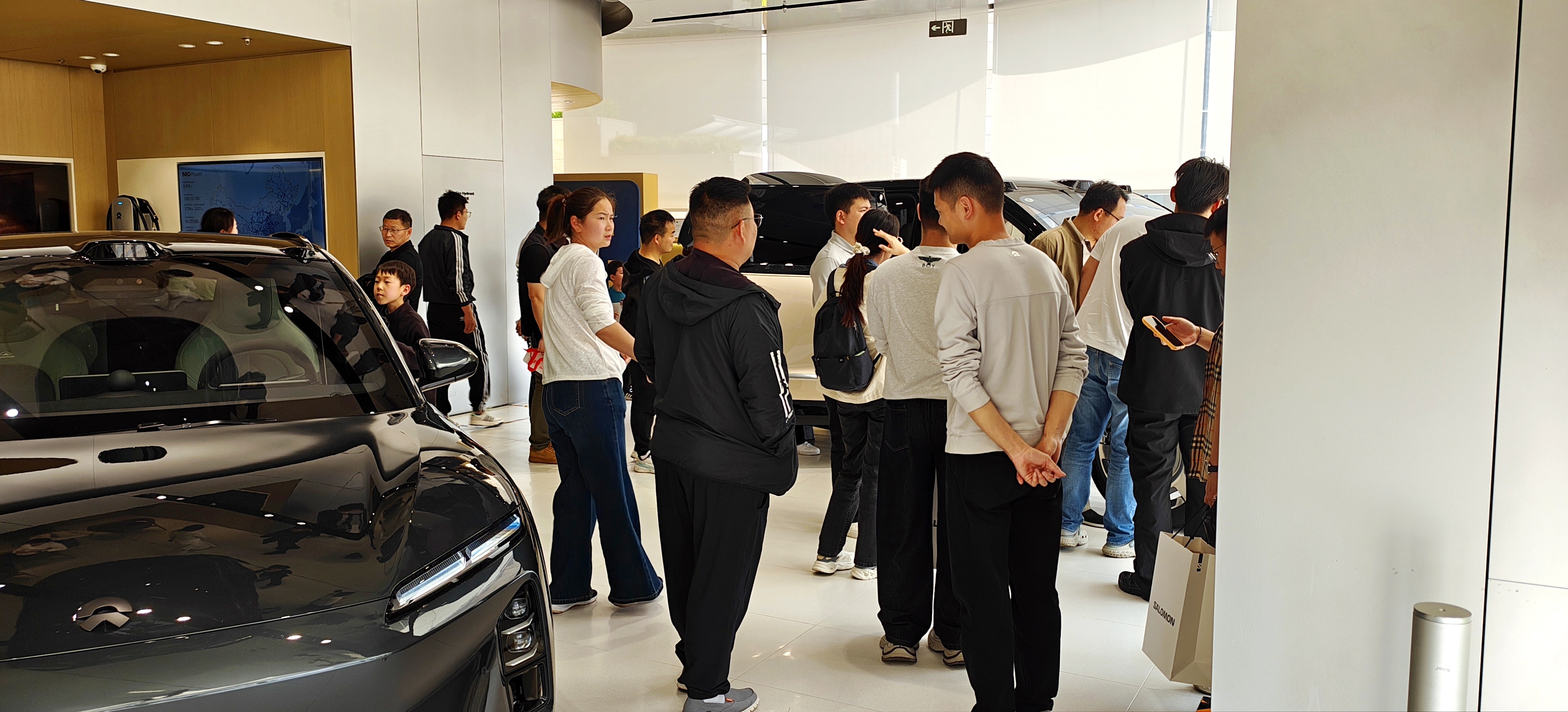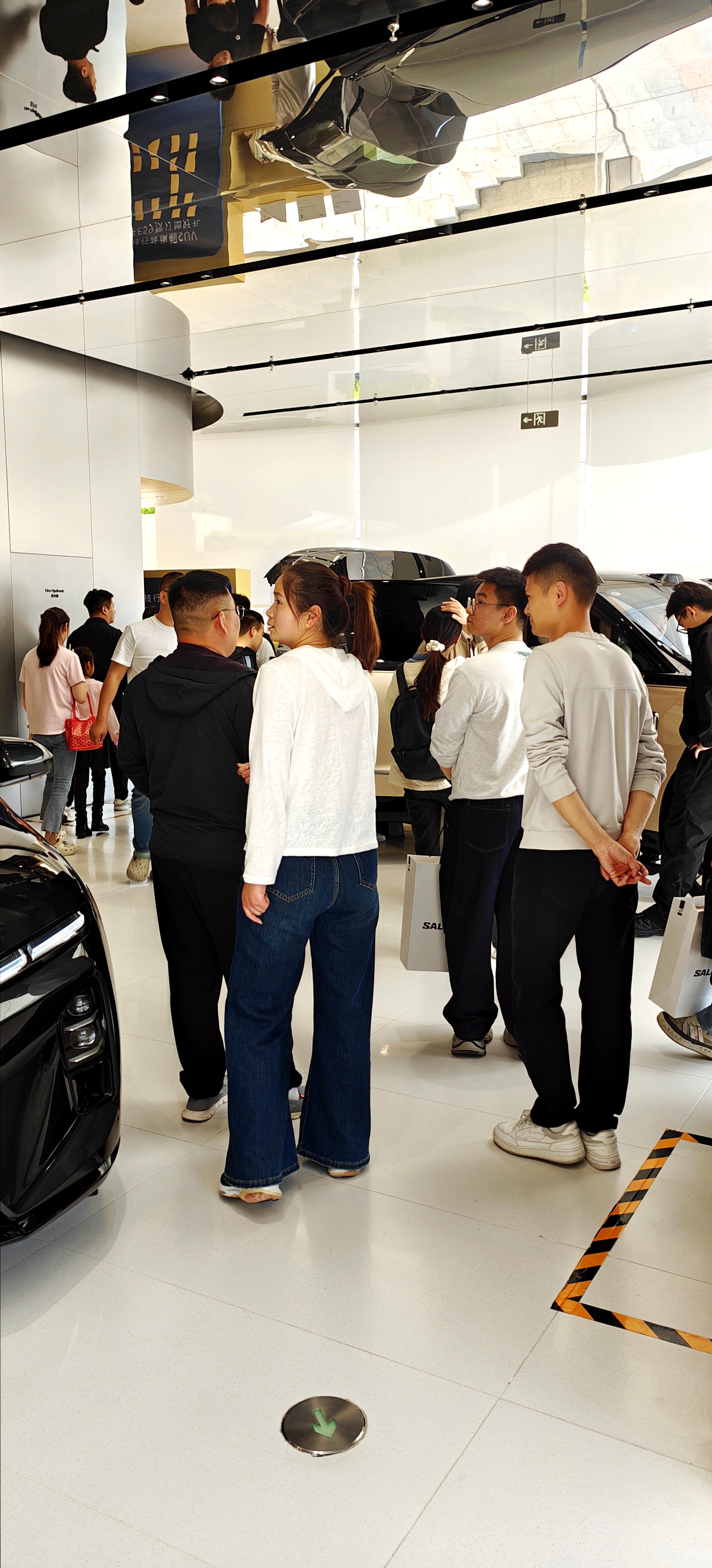 来万象城看 ES9,真实感受了一把什么叫 “旗舰气场挡不住”,现场人气火爆得有点意外,想上车体验一下居然要排队上车,全是围着车在看的。 站在车边的那种直观感受,真的被它的 “大” 和霸气震撼到了。作为旗舰 SUV,车身尺寸摆在那,但不臃肿,反而透着一股稳得住的气场。车头的光阶晶钻高清投影大灯、尾部流光飞簇的光翎尾灯,点亮之后那种视觉冲击力很强,停在商场展厅里,不用刻意介绍,路过的人都会忍不住多看几眼。这种霸气不是张扬的那种,而是扎实的旗舰底蕴,站在边上能明显感觉到它那种 “镇得住场” 的气场。 空间和舒适是真的没话说,尤其是它的二排,零重力行政座椅的包裹感、42 点的全身按摩,连足底都有专门的机械按摩,长途坐这个位置,真的是享受。前后备箱加起来 816 升的容积,官方说的「6 人 13 箱」,家用、商务都完全 hold 住。还有那个 LC 智能调光车窗,变色速度又快又丝滑,隐私性直接拉满,太懂高端用户的需求了。 蔚来的原创感也是真的强。Double-Dash 的日行灯、光阶晶钻大灯,还有尾部的流光飞簇尾灯,一眼就能认出是蔚来,辨识度拉满。内饰最让我惊艳的是那个苏绣的「河山锦绣」,近 40 万针脚的工艺,摸上去的质感完全不一样,不是那种廉价的装饰,是那种可以反复品的设计,这种用心是能感受到的。 动态这块目前还没开放试驾,不好说,但是有天行底盘在,估计也强。线控转向+后轮转向,说这么大个车转弯半径只有5.4米,跟萤火虫这个小车快差不多了。 说实话,本来只是随便逛逛,结果排队等了十几分钟上车体验,越看越心动。能让这么多人愿意排队等,不是没有道理的。