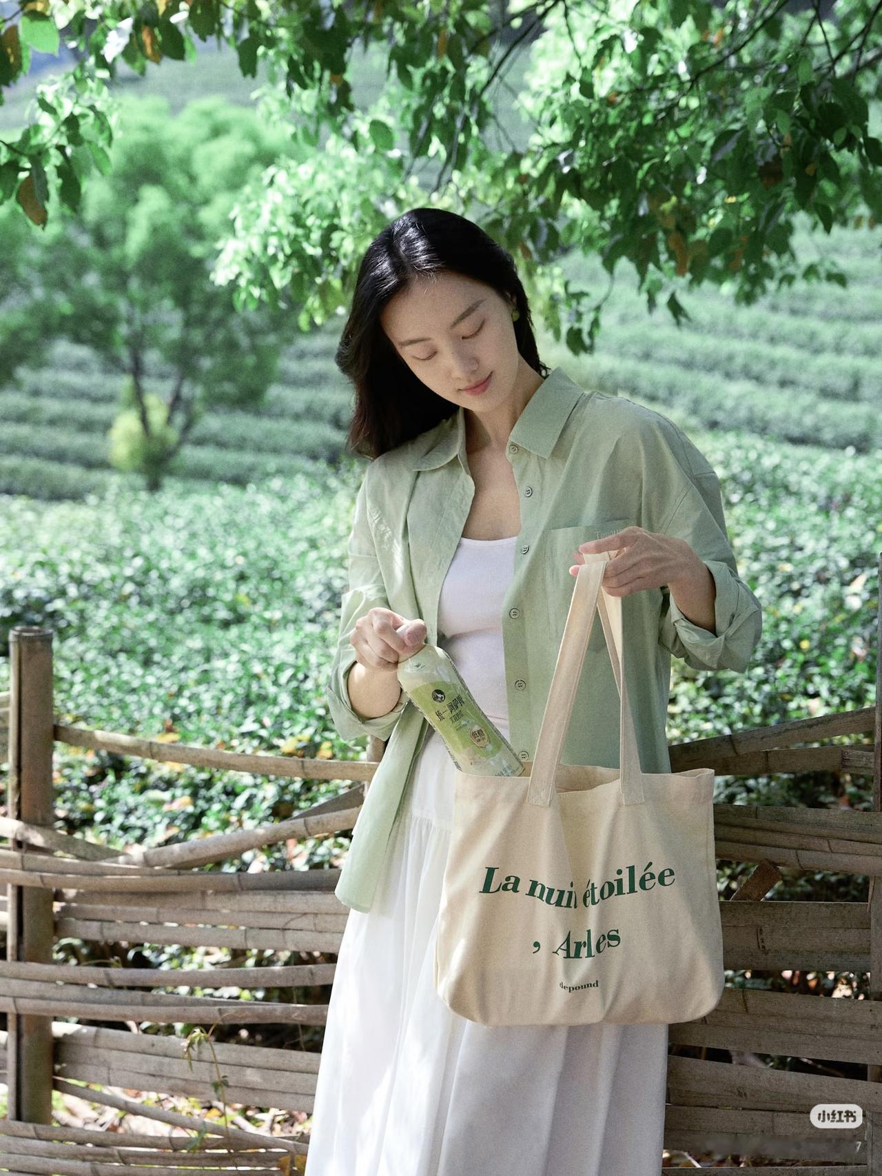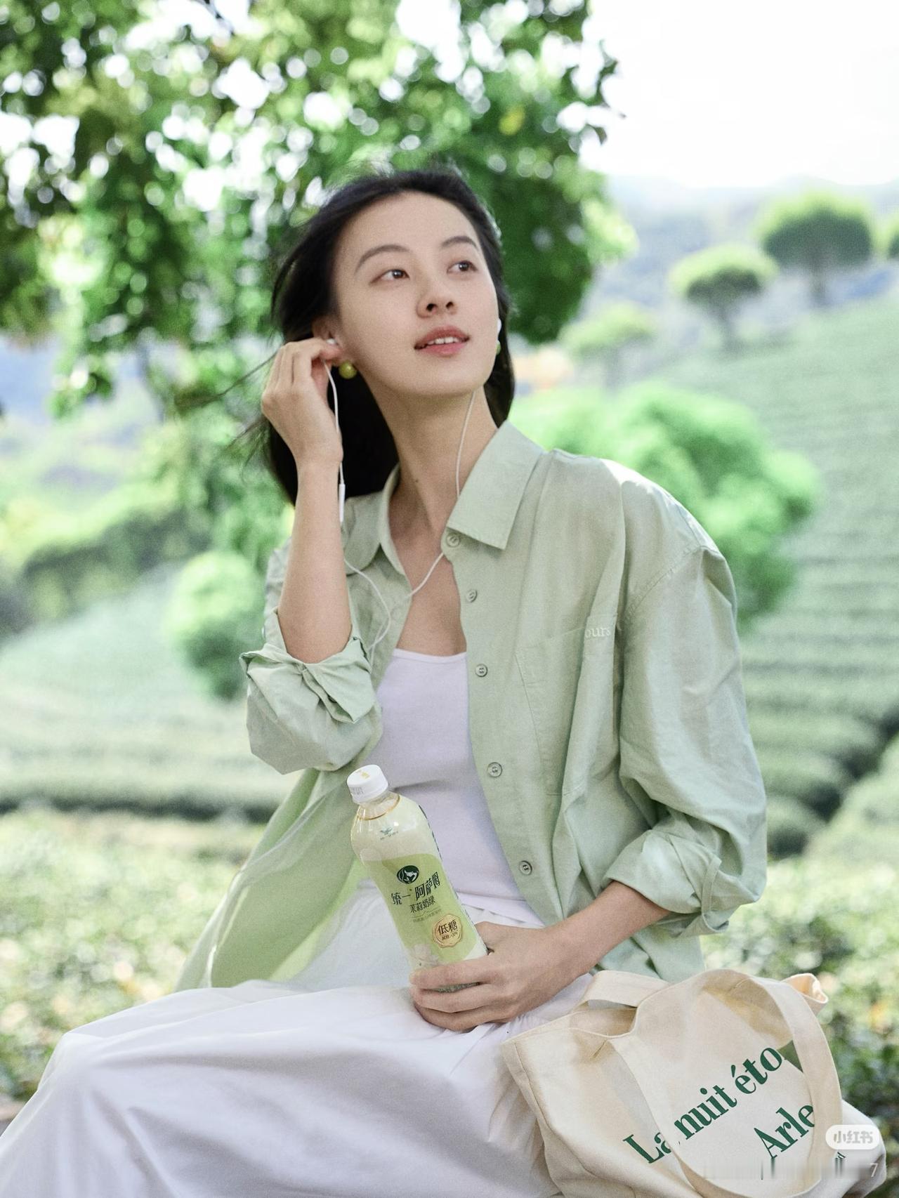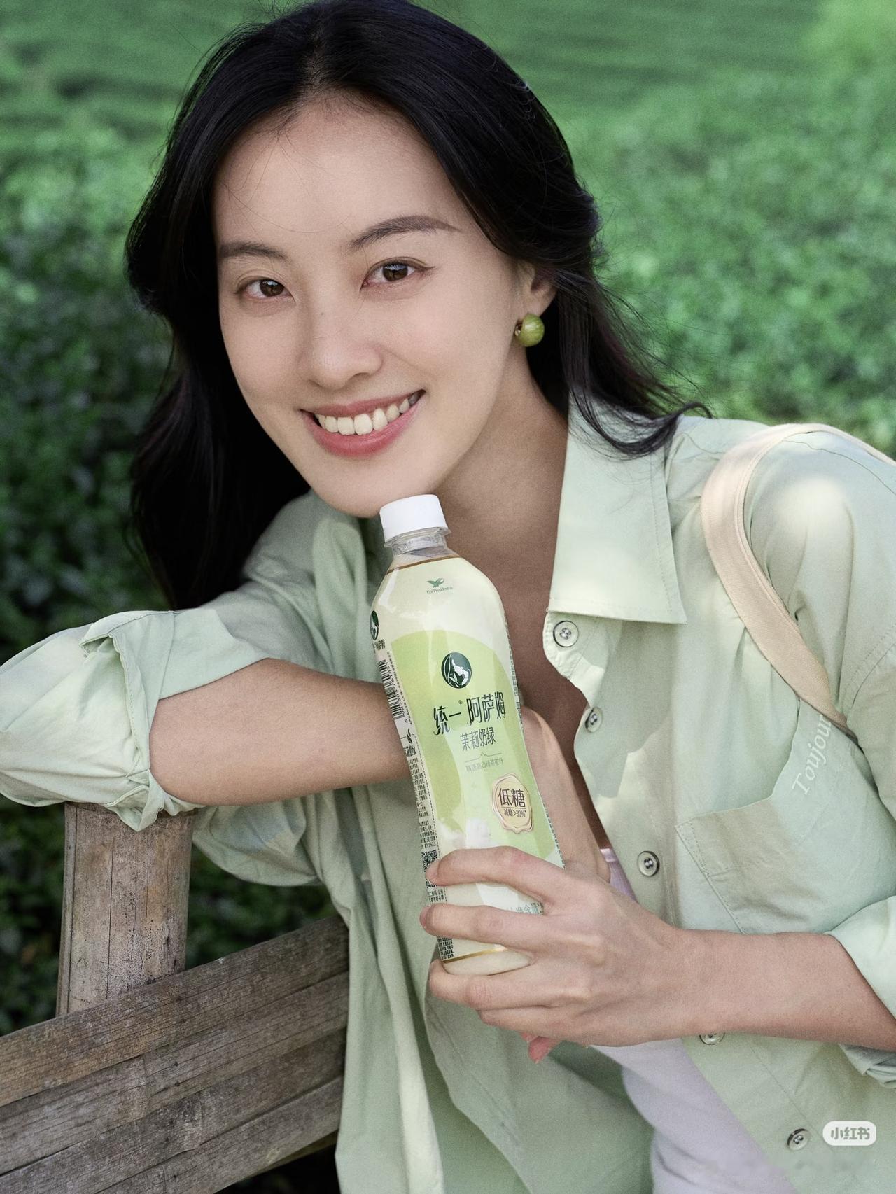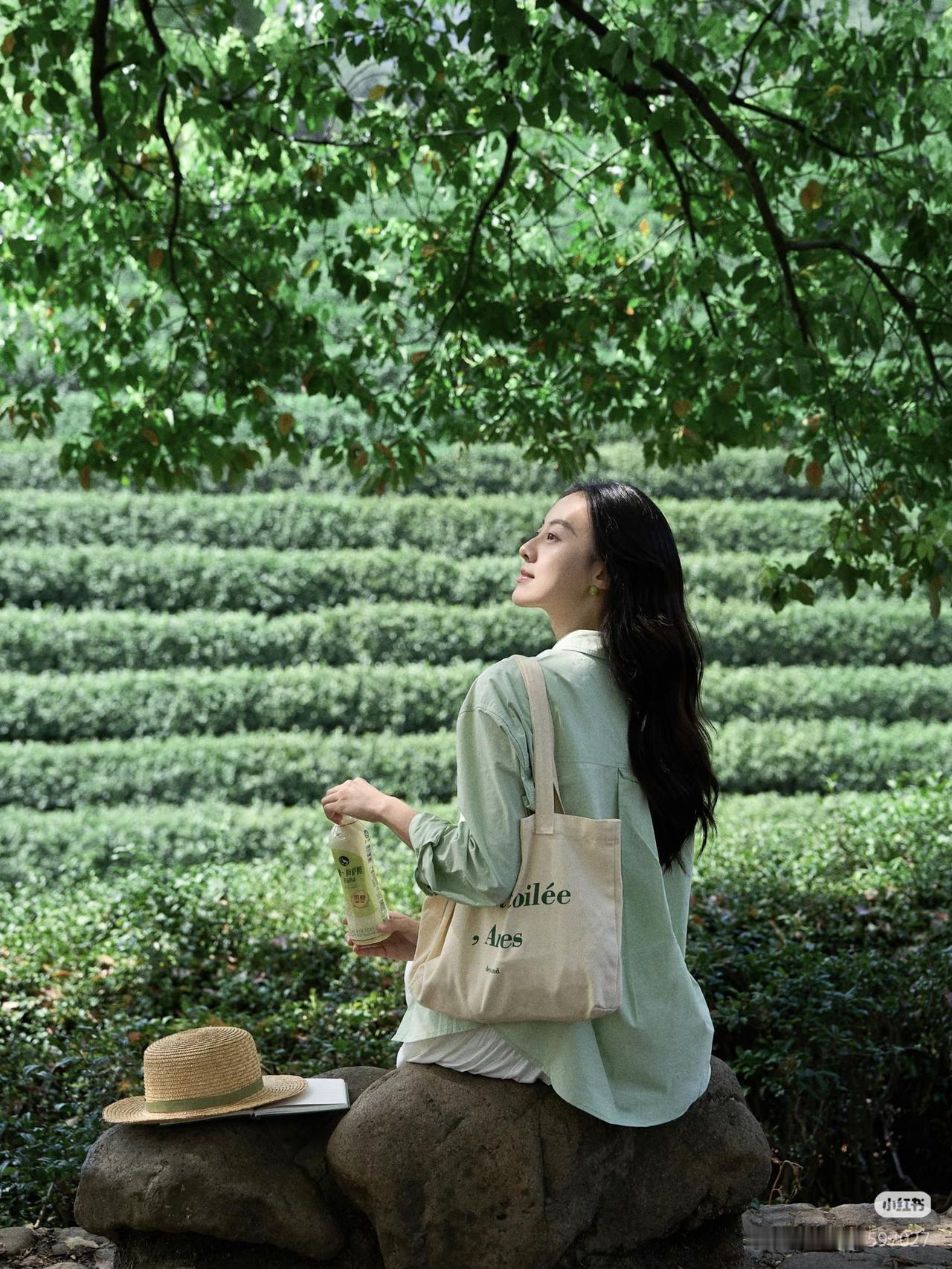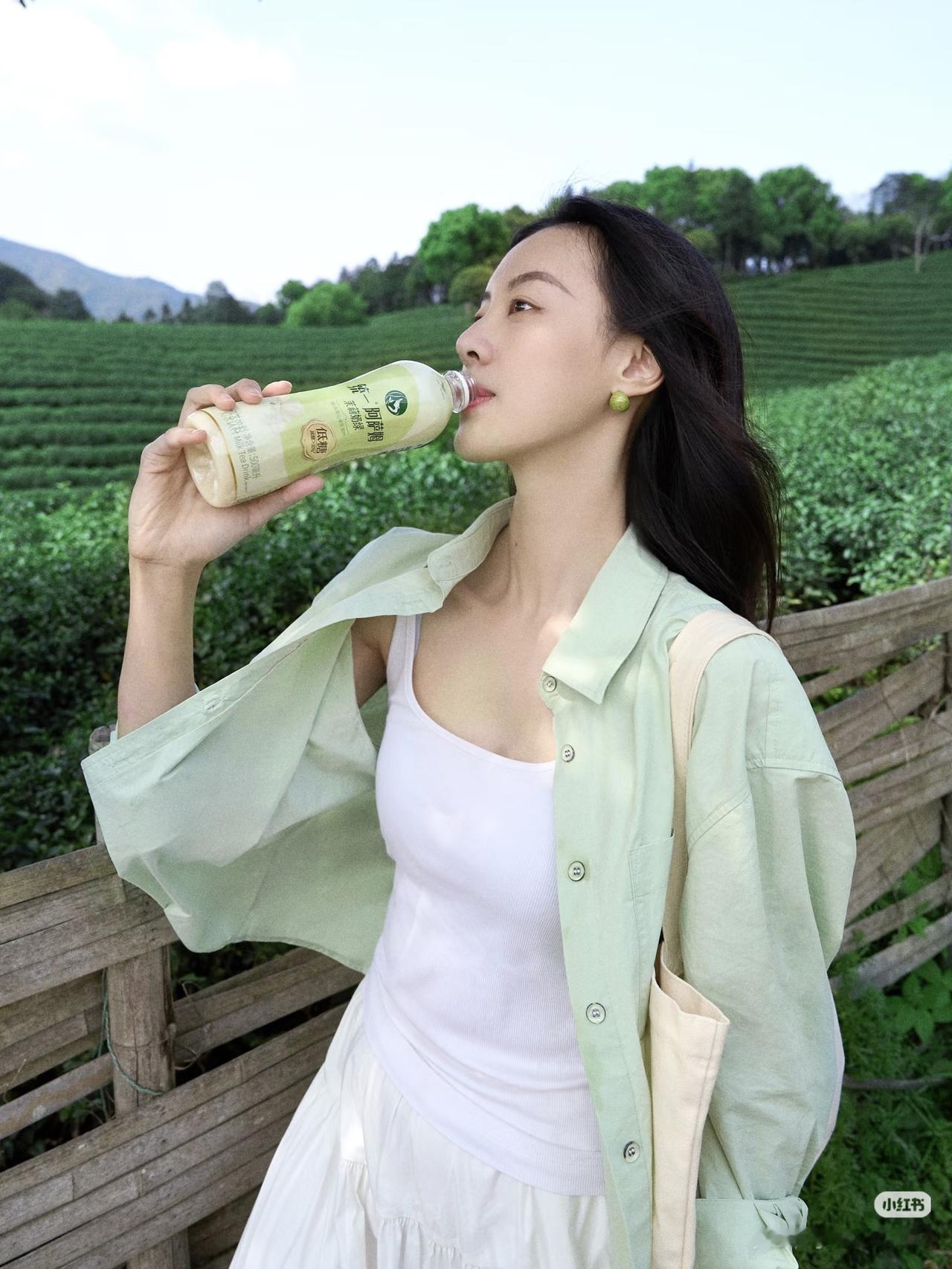 绿衣美人饮芳泉,茶香满怀心自闲。