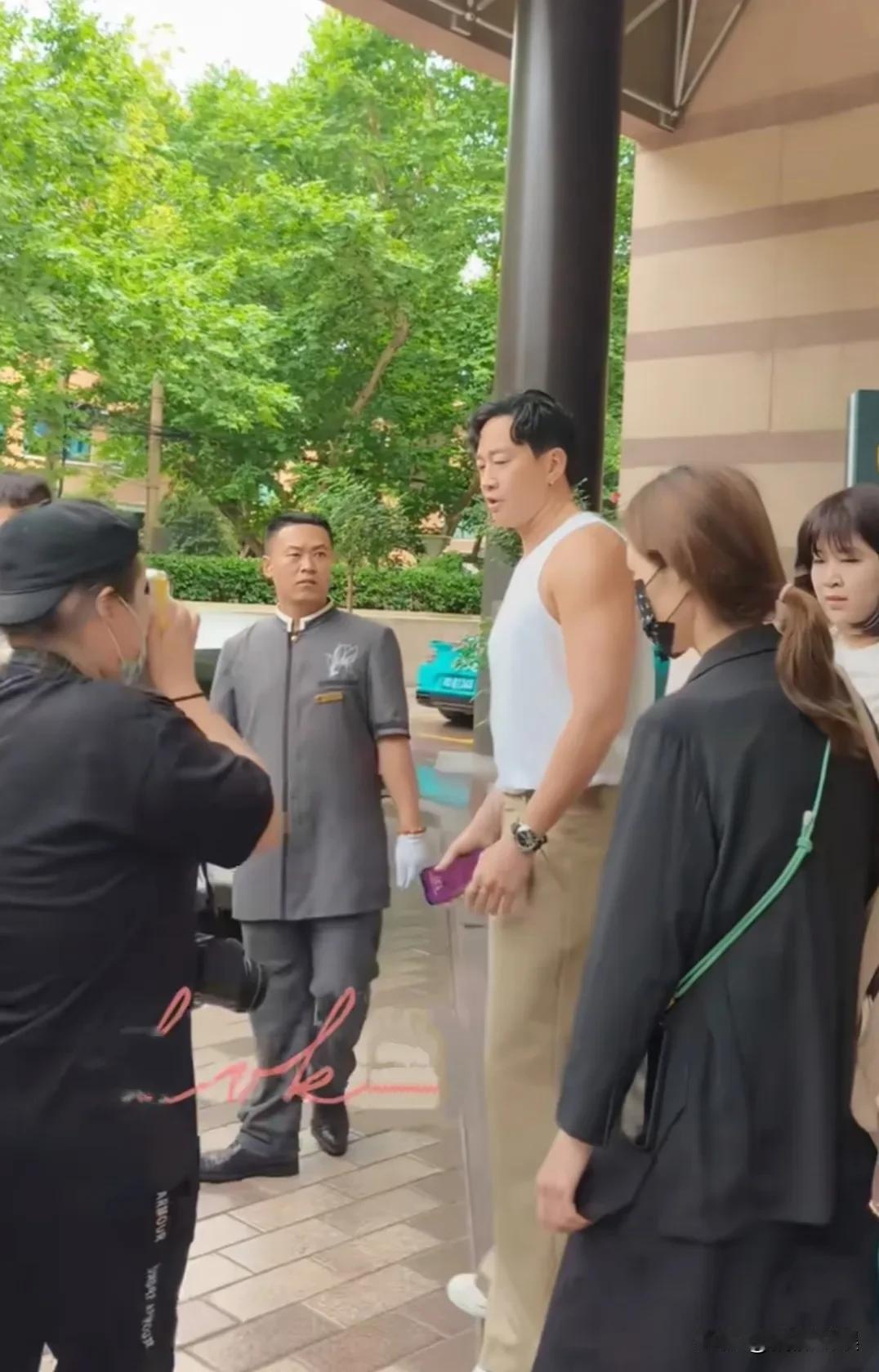 真该何润东翻红啊,这么情绪稳定又很温柔的一个人! 他在宿迁现身,穿着白色背心和浅棕色长裤,准备离开酒店去参加活动,个子高挑,感觉快两米了,身材壮硕,身板结实,胳膊上的腱子肉紧致流畅,走路脚下带风,真的很有“大将军”的气势。 就是这发际线有点高! 就在他准备上车出发时,很多粉丝找他合照,还有一个女粉丝拿着镜头对着他怼脸拍,换作一般明星肯定拒绝或者不高兴了(因为这动作很没礼貌),但是没想到他马上止住了脚步还配合她拍照,说话也很有礼貌,这么大的个子,声调却温温柔柔。 真该他翻红啊,本来就演技好、形象好,职业素养还这么高,他不红谁红啊!