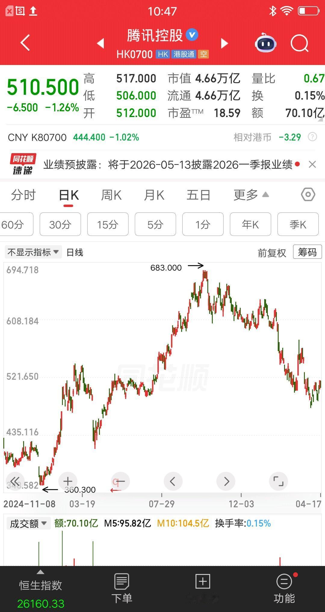 一位北京的股民,他在去年3月份,515元买入腾讯股票,买完之后股价大跌了,在430元割肉止损了,亏了60万多块。他本来想学巴菲特,做价值投资,看好腾讯在AI上的布局。可是一旦账户亏损,心态就动摇了。 后面股价慢慢修复,而且还继续创新高。他默默拿起计算器,515涨到683涨幅30%。他非常后悔心有不甘,又在622元重新买回去了,这次运气依然不好,股价再次开始调整,他又在547元止损卖出,这次亏损37万块。 两次亏了一百多万,他的心态彻底崩了。虽然他不差这点钱,就是那种挫败感,太打击信心了。他每天闷闷不乐,也不出去玩,也不社交。 身边有炒股水平不错的朋友,对他说,学习炒股是个长期的过程,一般要三五年才能稳定,所以别急于求成,就算是天才,也得几年吧。 他的经历告诉我们,刚入市千万别投入过多资金,否则会教昂贵的学费。