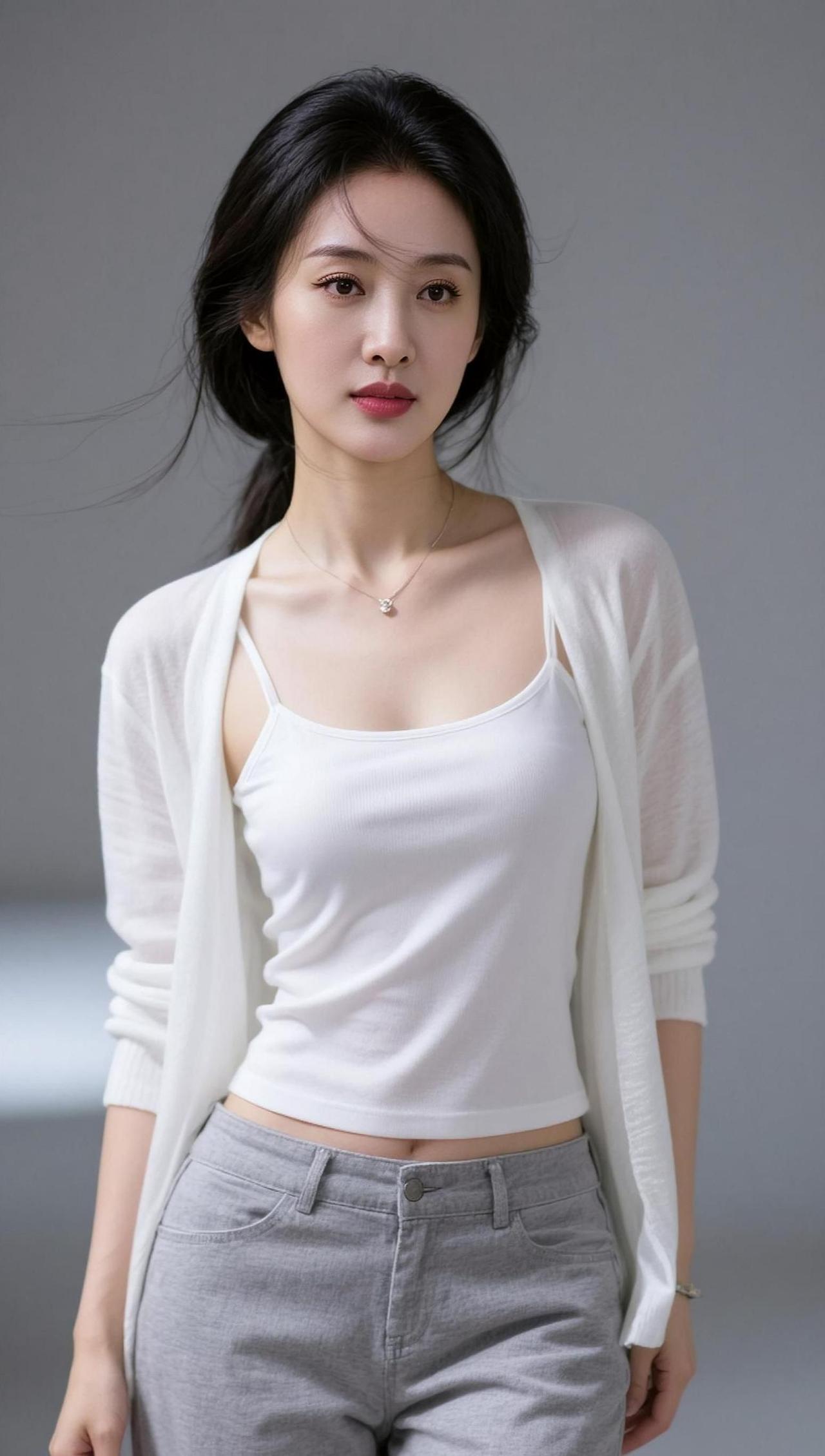 AI低胸自拍 抖音ai创作 裸妆 白衬衫搭配精致妆容 初恋脸