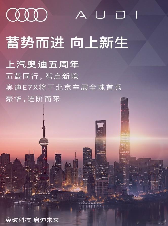 上汽奥迪迎来品牌五周年,以年轻、科技、豪华为内核,用创新定义豪华新境。奥迪品牌首款SUV奥迪E7X,将于北京车展全球首秀。汽场全开奥迪E7X2026北京车展