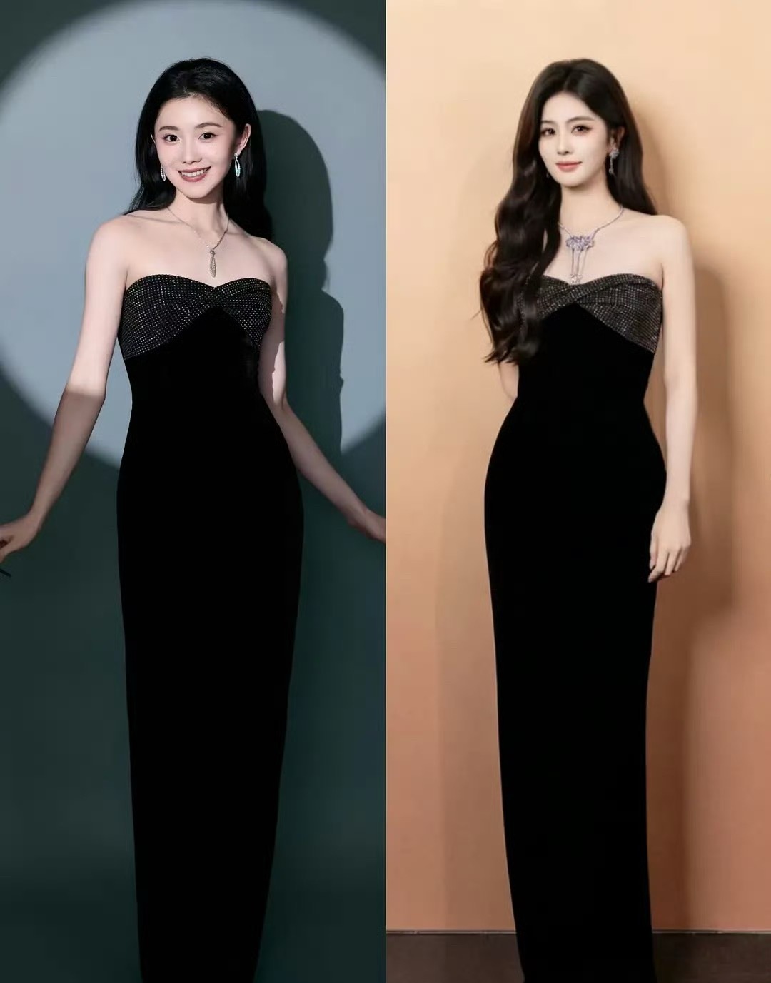 刘浩存和白鹿同款晚礼服造型。
