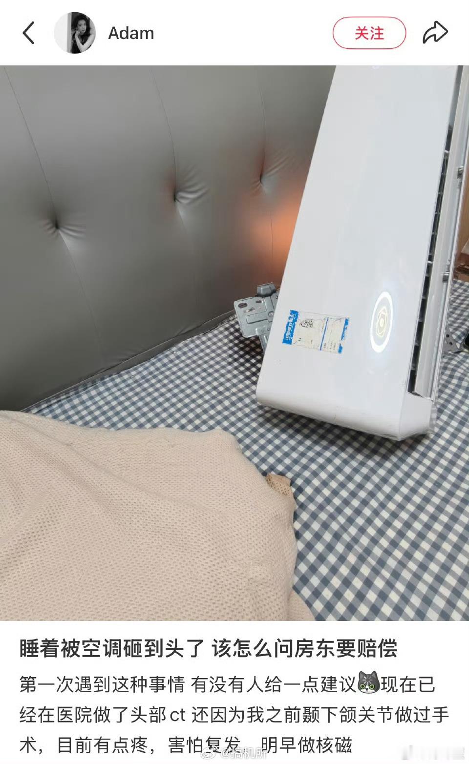 睡觉时被空调砸到头了小时候总在想头顶那个大风扇会不会掉下来砸到人,或者直接变成血