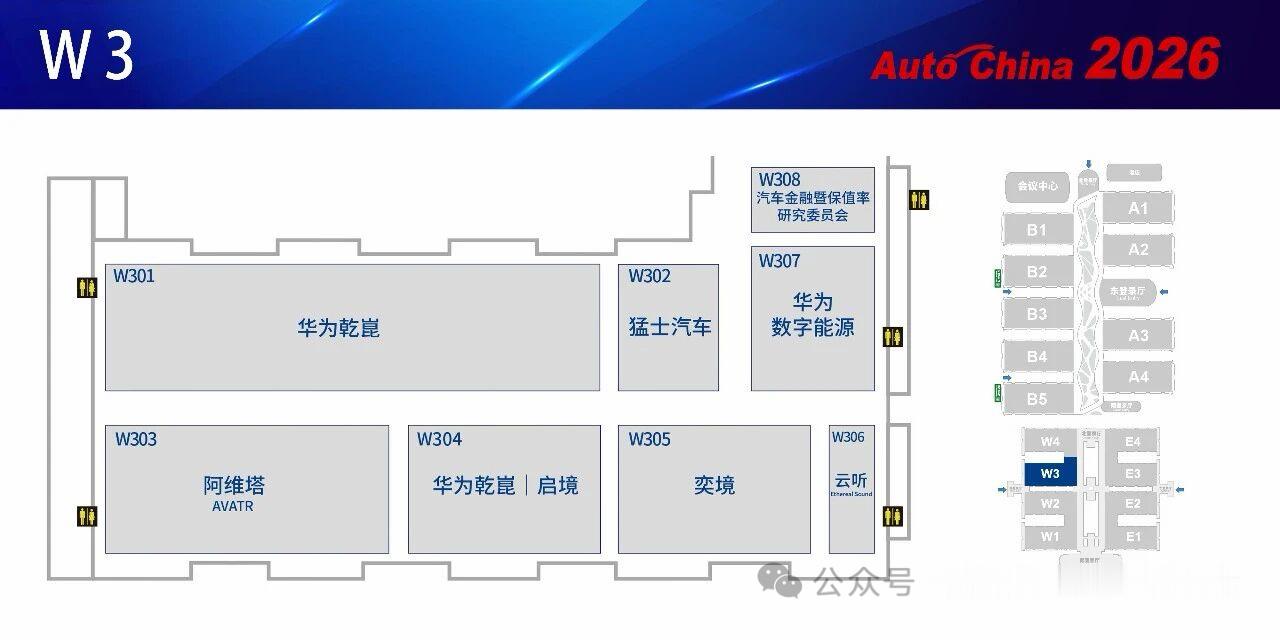 华为乾崑及伙伴都在W3,也包馆了。鸿蒙智行在B4,零跑也在这个馆。