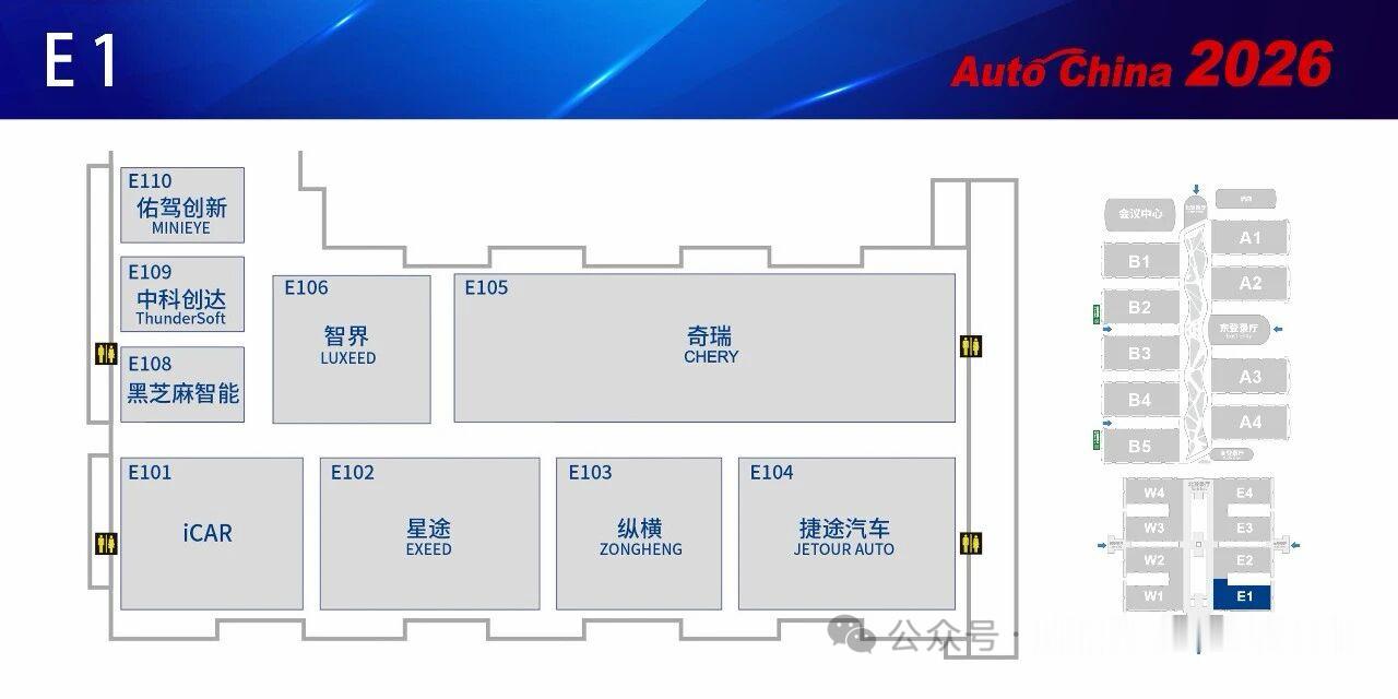 问界、小鹏、蔚来在一块,在E2。理想则挨着小米,北京新势力抱团。比亚迪、大众、北汽、奇瑞依旧是集团包场的方式。