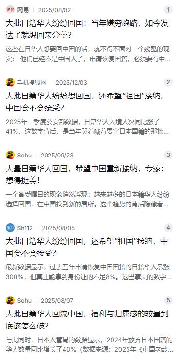 中日关系现在这么紧张,一边是大批中国人急着从日本往回跑,另一边却没看到在中国的日本人有大规模回国的动静,很多人觉得是日本人胆子大、心态好,不害怕局势恶化,但事实根本不是这样。 麻烦看官老爷们右上角点击一下“关注”,方便您进行讨论和分享,感谢您的支持! 先说说中国游客这块。2026年1月,中国内地赴日游客数量跟去年同期比,直接掉了60.7%。日本政府观光局的数据显示,1月份只有38.53万中国游客去了日本,而去年同期是98.05万人次,这一下子少了将近六成。这个跌幅比2025年12月的45.3%还大,说明情况在持续恶化。受中国游客大幅减少影响,1月份去日本的外国游客总数也时隔四年首次出现同比下降。 酒店预订的取消率更是惊人。据《日本经济新闻》报道,2026年春节期间,日本全国酒店来自中国的预订取消率高达53.6%,比2025年春节多了将近15个百分点。三越伊势丹、高岛屋、大丸松坂屋这些日本百货公司,1月份的免税销售额全都同比下降了超过10%。日本百货店协会的人直接说,旅游市场的严峻形势预计还会持续。 不光是游客不去日本了,那些常年住在日本的华人也在琢磨着回来。2025年一季度,日籍华人入境人次同比涨了41%。过去五年,申请恢复中国国籍的日籍华人更是暴涨了300%。这些人里,很多是上世纪八九十年代去日本打工的那批人。那时候国内刚解决温饱,日本正缺人手,一个月能挣一万多块,顶国内十几年工资,谁不心动?可去了才发现,研修生就是干最脏最累的活,工资还常被克扣。 后来日本经济泡沫一破,三十年工资不涨,房价跌得惨不忍睹。再看看中国,高铁四通八达,手机支付随便扫,连县城都比东京方便多了。落差这么大,谁心里不慌?但想回来没那么简单——中国不承认双重国籍,要恢复国籍得先放弃日本国籍,还得有直系亲属担保,普通人基本没戏。2023年倒是出了个政策,在中国工作满4年、累计居住满2年的外籍人员,可以直接申请5年居留许可。不少做跨境电商、国际贸易的日籍华人就靠这个实现了软着陆。 不过话说回来,光看中国人往回跑,在华日本人却没什么大动静。日本外务省最新统计显示,2025年长期居住在中国的日本人约为9.3万人,跟前一年比只少了不到5%。上海的日本人最集中,大约5.2万长期居住,其中古北社区就住了超过3万人。这些人在上海扎了根,形成了成熟的日式生活圈——日式餐厅随处可见,超市专门设了日本直运区,小区物业有会说日语的管家,三甲医院常年有日语翻译,地铁站都标了日文。孩子上学也不用愁,上海有5所日本独资学校,12所公立学校开了日语课程。 那为什么中日关系这么紧张了,这些人还不走?说白了,不是不想回,而是回不去。很多日本人在这儿摸爬滚打十多年,事业早就绑在了这片土地上。要是现在回日本,超过六成的职场人面临要么降职、要么工资少三成的风险。日本职场本来就卷得厉害,65岁以上还在干活的就有900多万人,年轻人找工作都难,从中国回去的更容被排挤。还有些日本人自己开了日料店、日式便利店,客人九成都是中国人,一撤店之前的努力就全白费了。不少人干脆把日本的房子卖了,全家都搬过来,回到日本根本没有安身之地。 另外,日本自己也在收紧签证政策。2025年底开始,日本政府就在讨论把外国人归化的居住年限从5年延长到10年,同时还要强化纳税审查、提高日语要求。管理签证和永住的审查也越来越严。这就意味着,那些已经回到日本的人想再出去,面临的不确定性更大。与其冒这个险,不如先留在原地观望。 还有一点不容忽视——日本2026年版《外交蓝皮书》的措辞变化。2026年4月10日,日本内阁会议通过的《外交蓝皮书》把中日关系从“最重要的双边关系之一”降级为“重要邻国”。共同社指出,这反映了因日本首相高市早苗围绕台湾问题的国会答辩而急转直下的日中关系。蓝皮书还提到台湾海峡紧张局势加剧等问题,进一步强化了安全方面的关联。中国外交部回应称,日本首相的涉台言论损害了中日关系的政治基础。 这一降级可不只是换个说法那么简单。中日关系本来就因为历史问题、领土争端、经济竞争等各种因素复杂得很,现在官方定位都变了,两国之间的紧张情绪只会越来越重。对于普通老百姓来说,这种紧张感最直接的体现就是——出门旅游得掂量掂量安不安全,做生意得看看市场会不会受影响,长期定居的人得更谨慎地规划未来。 回头再看开头那个问题——为什么日本人看起来不慌?不是因为他们胆子大,而是因为他们的根已经扎在了中国,想拔也拔不动。事业的牵绊、生活圈的融入、回国的成本、政策的不确定性,每一样都是实打实的障碍。这和当年中国人去日本打工时一样,都是为了生活做出的选择,只不过现在风水轮流转了。