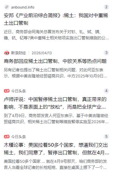 突发转向!稀土出口不卡了?中国这步棋太妙了! 4月9日,商务部突然宣布:原定于2025年10月实施的稀土出口管制,暂停到明年11月10日。消息一出,全球供应链都炸锅了——中国这手牌打得漂亮,背后门道可不少! 麻烦看官老爷们右上角点击一下“关注”,方便您进行讨论和分享,感谢您的支持! 很多人可能纳闷,稀土管制不是才刚公布没多久吗,怎么这么快就变了?回顾一下时间线:2025年4月,中国对包括钐、钆、铽、镝等7类中重稀土实施出口管制;同年10月,又进一步收紧相关政策,当时西方媒体一片惊呼,说中国要“卡脖子”了。然而短短半年后,政策突然急转弯。商务部发言人何亚东在发布会上给出了官方解释——这一决定基于中美吉隆坡经贸磋商达成的共识。表面上,这是双方谈判桌上的相互让步,但细看之下,里面的门道深着呢。 要理解这步棋的精妙,首先得看清中国在稀土领域的底牌有多厚。很多人以为中国稀土强在资源多,其实真正让全球离不开的,是那套独步天下的加工能力。全球约69%的稀土开采量在中国,但冶炼分离产能占到全球近90%,精加工产能更是在90%以上。重稀土这一块更夸张——全球99%以上的精炼能力都掌握在中国手中,几乎找不到替代来源。这意味着什么?别的国家挖出来的稀土原矿,大部分还得运到中国来加工,离了中国,从原矿到高纯度材料这一关,谁都过不去。 面对这样的局面,美国近年来确实没闲着。2025年7月,美国国防部与本土稀土矿商MP Materials签了个大手笔合同,不仅直接砸下数亿美元成了这家公司的最大股东,还在德州建第二座稀土磁铁工厂,预计2028年投产。美国还出台政策,以每公斤110美元的价格兜底收购本国生产的稀土产品,而当时中国同类产品市价才每公斤52美元左右,相当于用双倍价钱硬撑本土产业链。澳大利亚的莱纳斯公司也不甘落后,筹了5亿多美元扩产,在马来西亚建设重稀土分离设施。这些动作听起来阵仗挺大,可真要从实验室走到生产线,没个十年八年根本成不了气候。美国地质调查局的评估也承认,美国想要完全摆脱对中国稀土的依赖,至少需要十年时间。 更关键的是,这些西方国家之前一直憋着一股劲,想着干脆联合起来,搞个“去中国化”的稀土小圈子,从零开始搭一条完整的供应链。这玩意儿说起来容易,真干起来才知道有多难——光有钱不够,还要有技术、有专利、有熟练工,缺一不可。就在他们摩拳擦掌准备大干一场的时候,中国这记“暂停管制”的操作,相当于在他们身后突然断了粮草。你想,眼看着就要勒紧裤腰带自己开干,这时候中国突然敞开供应了,价格还便宜,质量还好,谁还愿意花十倍的成本去搞什么替代? 这就是分化瓦解的高明之处。那些原本喊着要“去中国化”喊得最凶的政客,回去一看,本国的企业正忙着和中国供应商签合同、补库存,根本没心思搭理什么替代产业链。久而久之,重建本土产业链的冲动和投资热情,就这样慢慢消磨殆尽了。对于外资企业来说,中国给出的信号很明确:只要你老老实实做民用生意,稀土供应管够。对普通老百姓来说,这意味着新能源汽车、手机、家电这些高科技产品的价格不至于因为稀土短缺而暴涨。中国这一招,既稳住了民用产业的饭碗,又给了西方国家一个台阶下,同时也向世界传递了一个信息——中国不仅是资源大国,更是负责任的全球供应链参与者。 再来看一组数据,就更清楚这次暂停管制的意义了。根据海关总署发布的统计数据,2025年中国稀土全年累计出口量达到62,585.2吨,比上一年增长了12.9%,创下了自2014年以来的最高纪录。而且2025年一季度出口14177吨,同比增幅5.14%,全年增长幅度还在持续扩大。这个数据放在全球贸易摩擦升级、多国联手试图“脱钩”的大背景下,本身就说明了一个事实——市场对中国稀土的需求根本挡不住,越是想脱钩,需求反而越旺。那些喊了好几年“替代中国稀土”的政客,看到这个数据,脸上多少有点挂不住。因为事实摆在眼前:不是他们不想替代,是真替代不了。 这次暂停管制,还有一个巧妙的点——保留主动权。仔细看,官方说的是“暂停实施至2026年11月10日”,而不是“永久取消”。这就像按下了暂停键,不是关机,什么时候需要,随时可以按回去。法律条文还在,出口审批机制还在,管控的紧箍咒并没有真正摘掉。更重要的是,这次暂停的侧重点也很讲究。主要放开的是超硬材料、稀土粉体、锂电池负极这些中低端产品,但镨钕氧化物、镝铽这些造高端磁铁的宝贝,还有冶炼分离的核心技术,照样卡得死死的。换句话说,民用的一般产品可以敞开供应,但真正涉及到国防军工和高精尖制造的核心材料,中国手里依然捏着开关。在2026年11月10日之前,如果局势有变,中国随时可以重新收紧管制。这种“收放自如”的状态,才是真正的战略主动权。