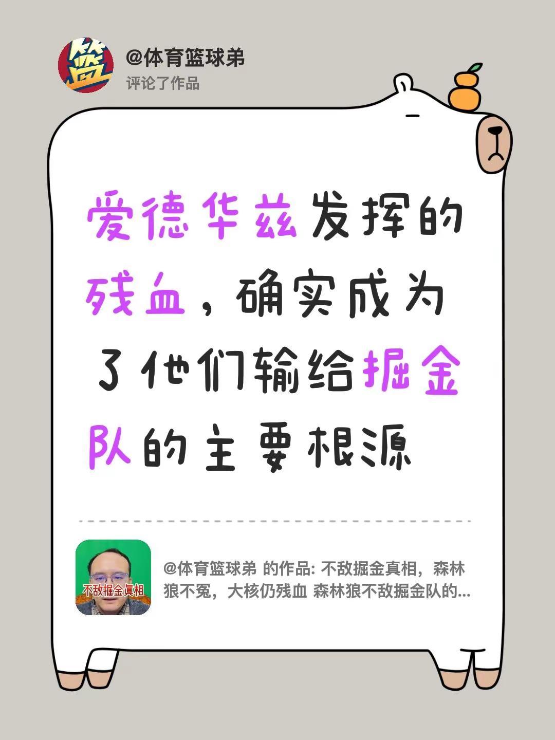 我评论了@体育篮球弟 的作品:爱德华兹发挥的残血,确实成为了他们输给掘金队的主要根源
