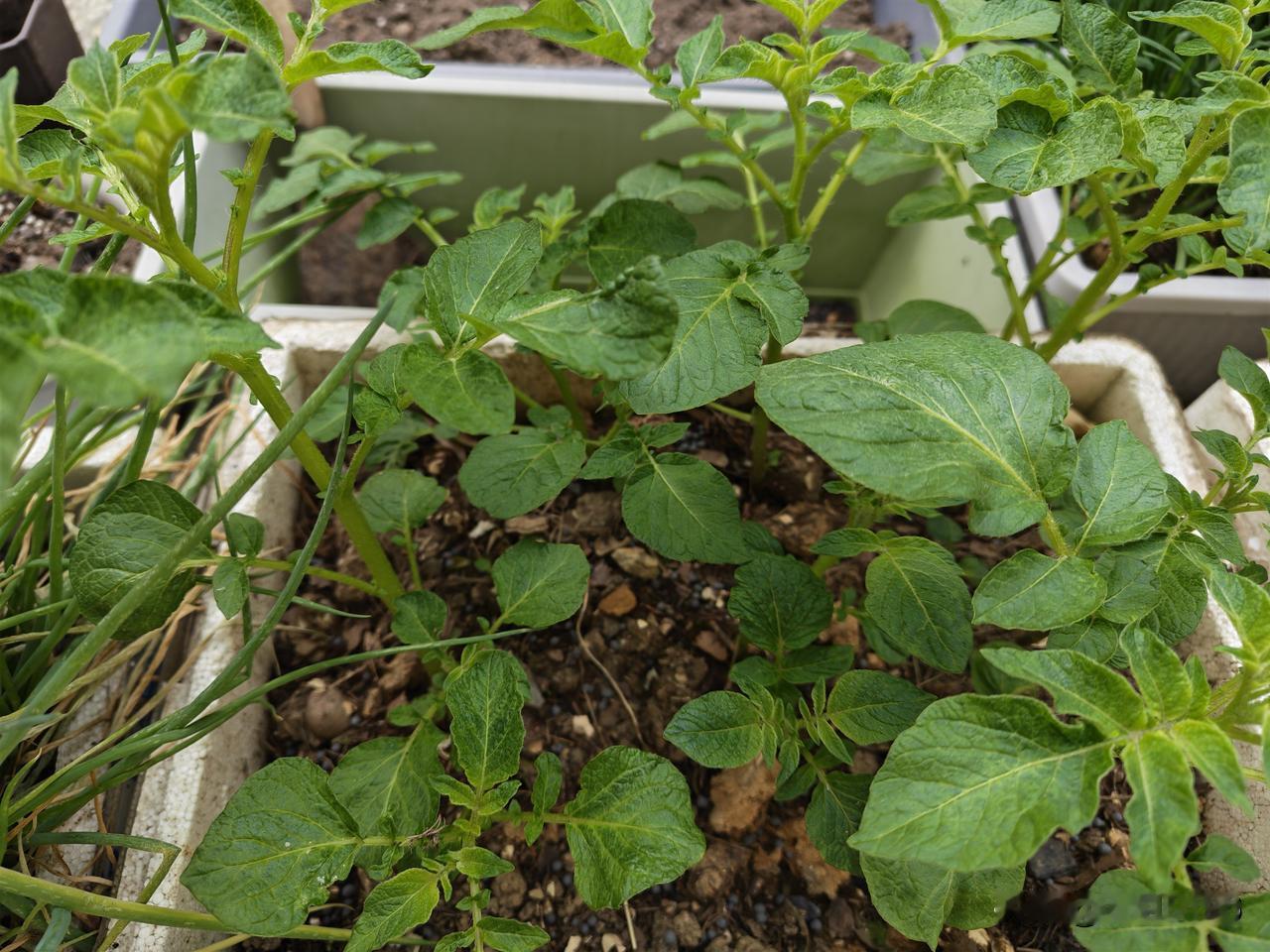 想吃有机黄瓜,特地跑江宁老街去买了两棵黄瓜苗,一开始长得鲜嫩翠绿,想着今年肯定能吃到自己种的黄瓜了,还乐呵乐呵的跟同事羡慕呢,可是好景不长,几天没上楼,就挂了。[捂脸] 家里买的土豆来不及吃,就发芽了,随便切了几个芽点,买到土里,也没管它,却呼呼长,可真叫有心栽花花不开,无心插柳柳成荫啊。