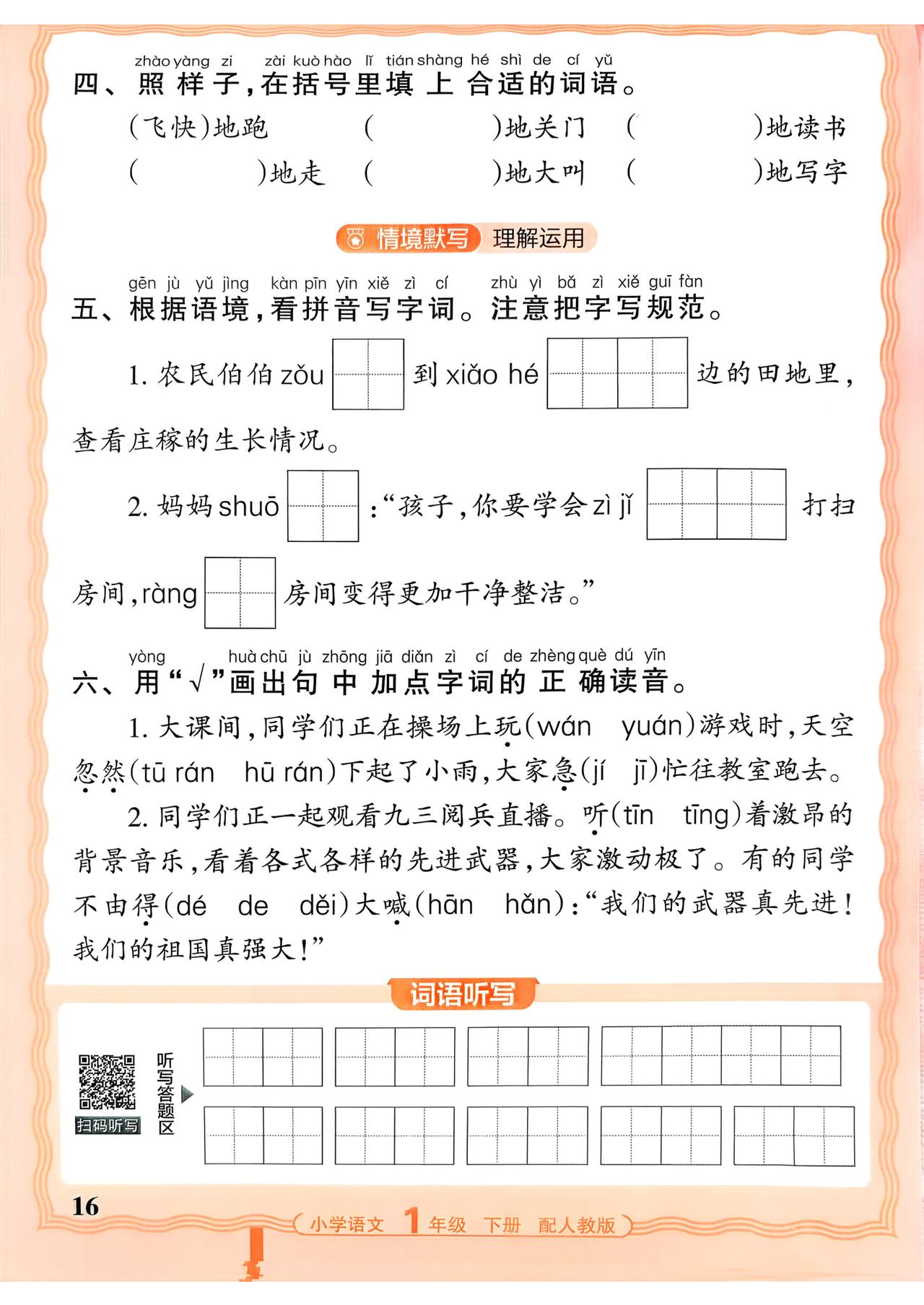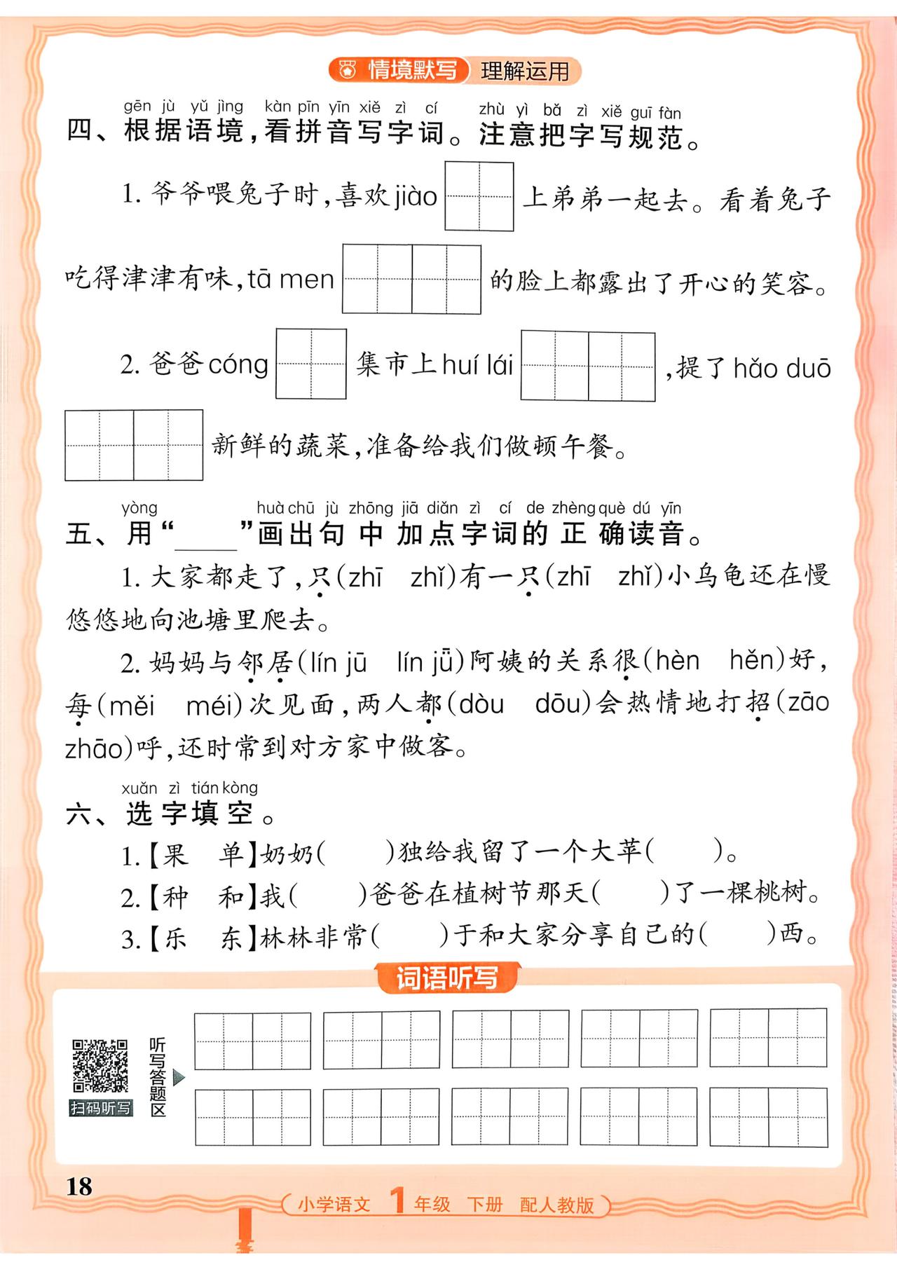 一年级下册语文期中复习,看拼音写词语、量词、四字词语、特殊词语、多音字组词、近义