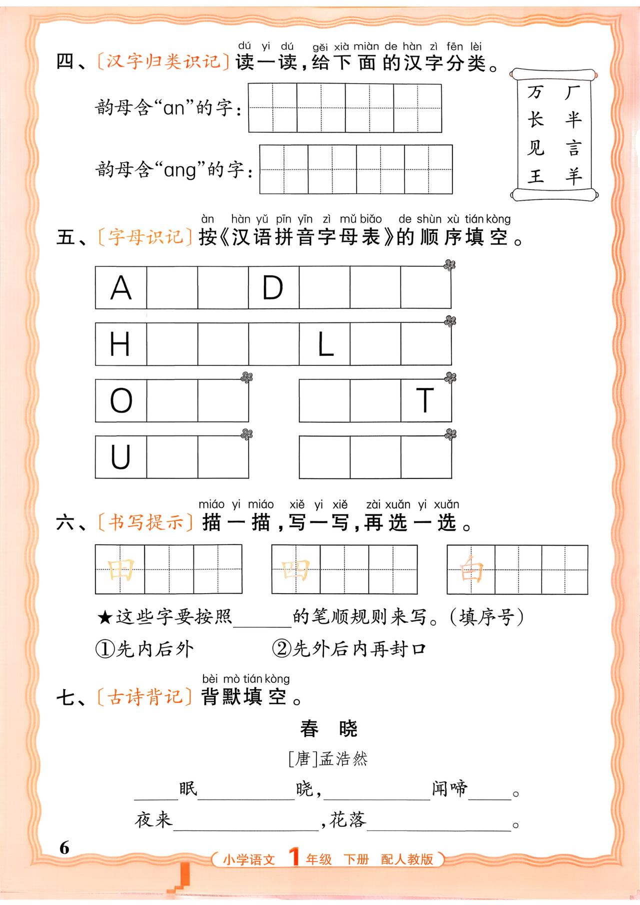 26春一年级下册语文,第六单元基础知识活页默写+参考答案,收藏备用