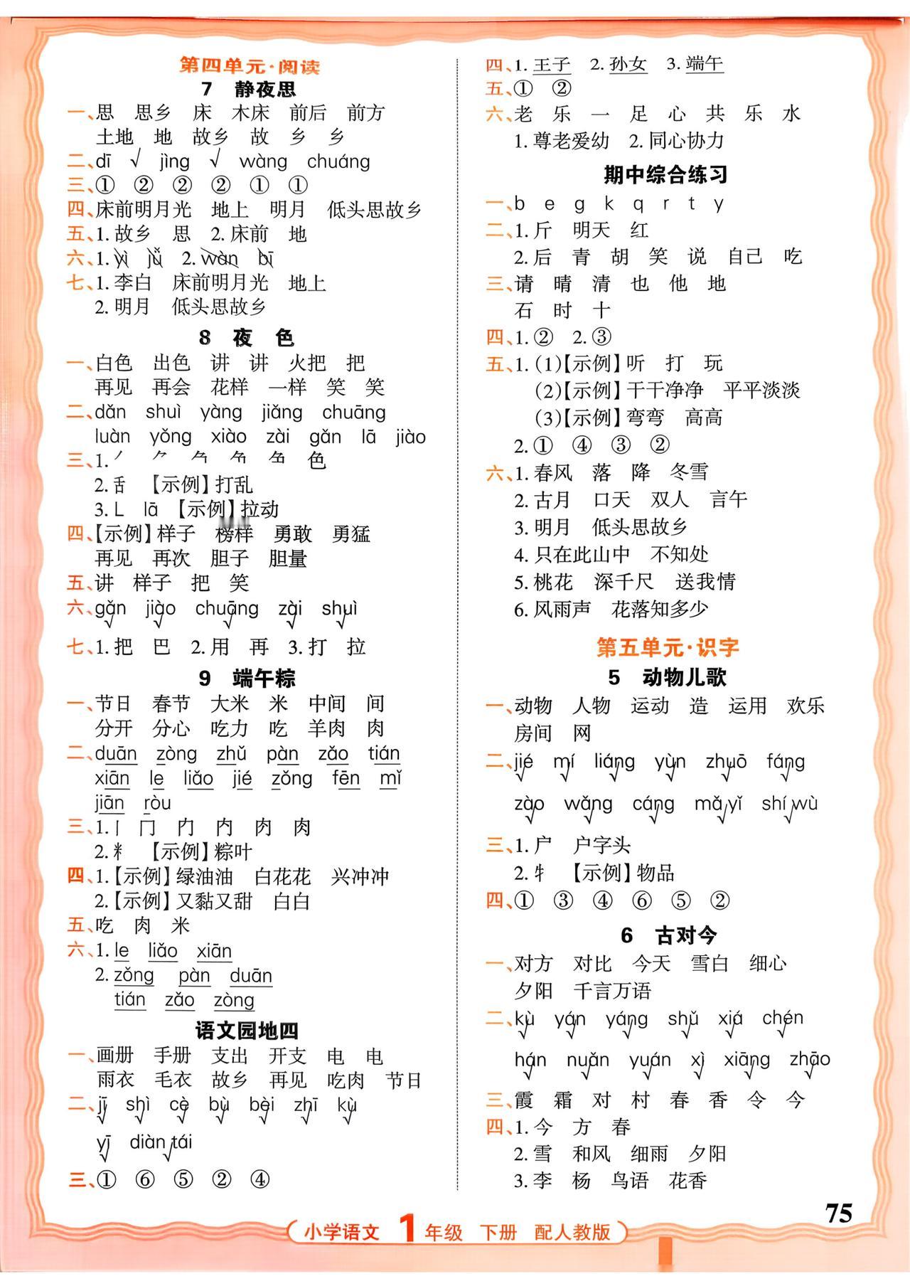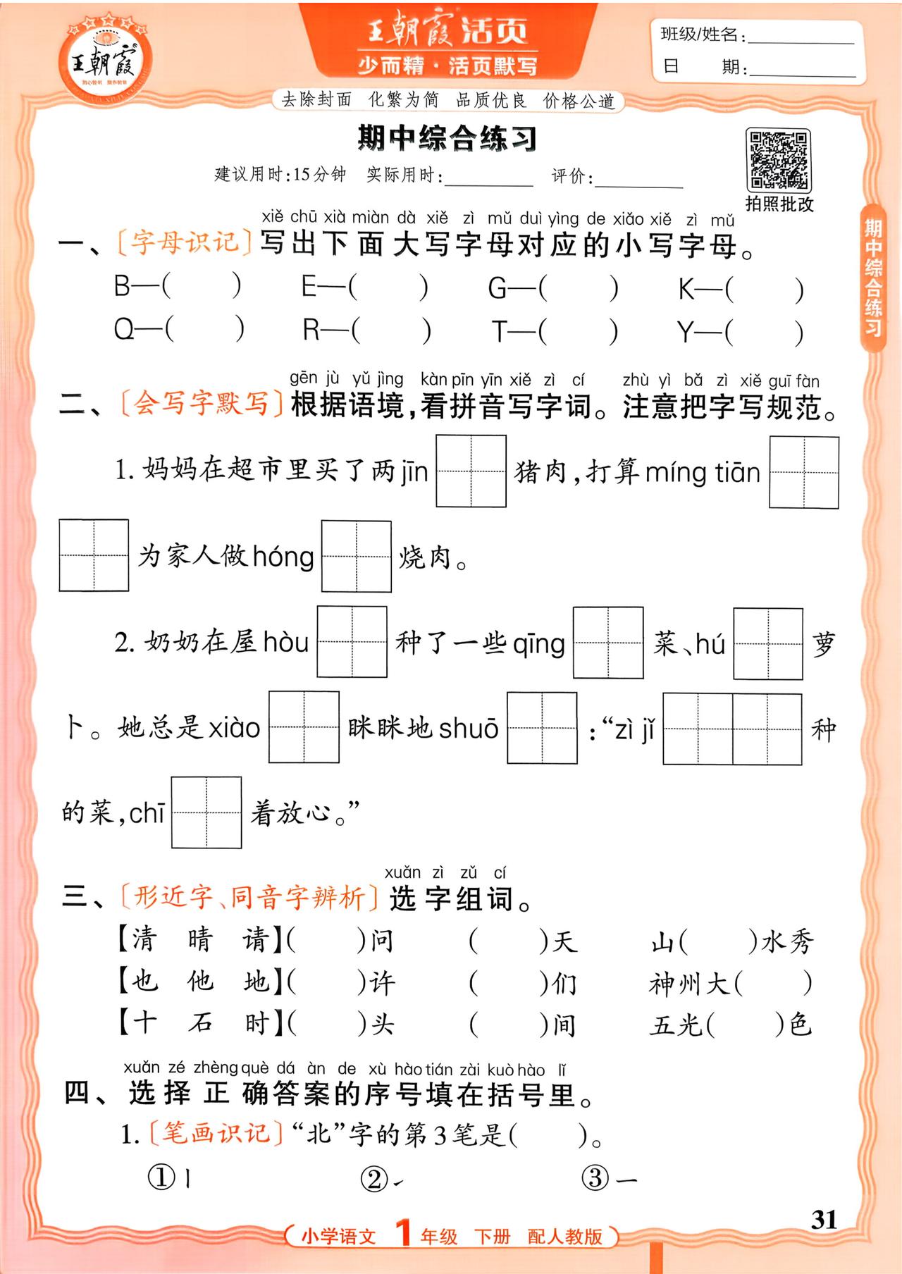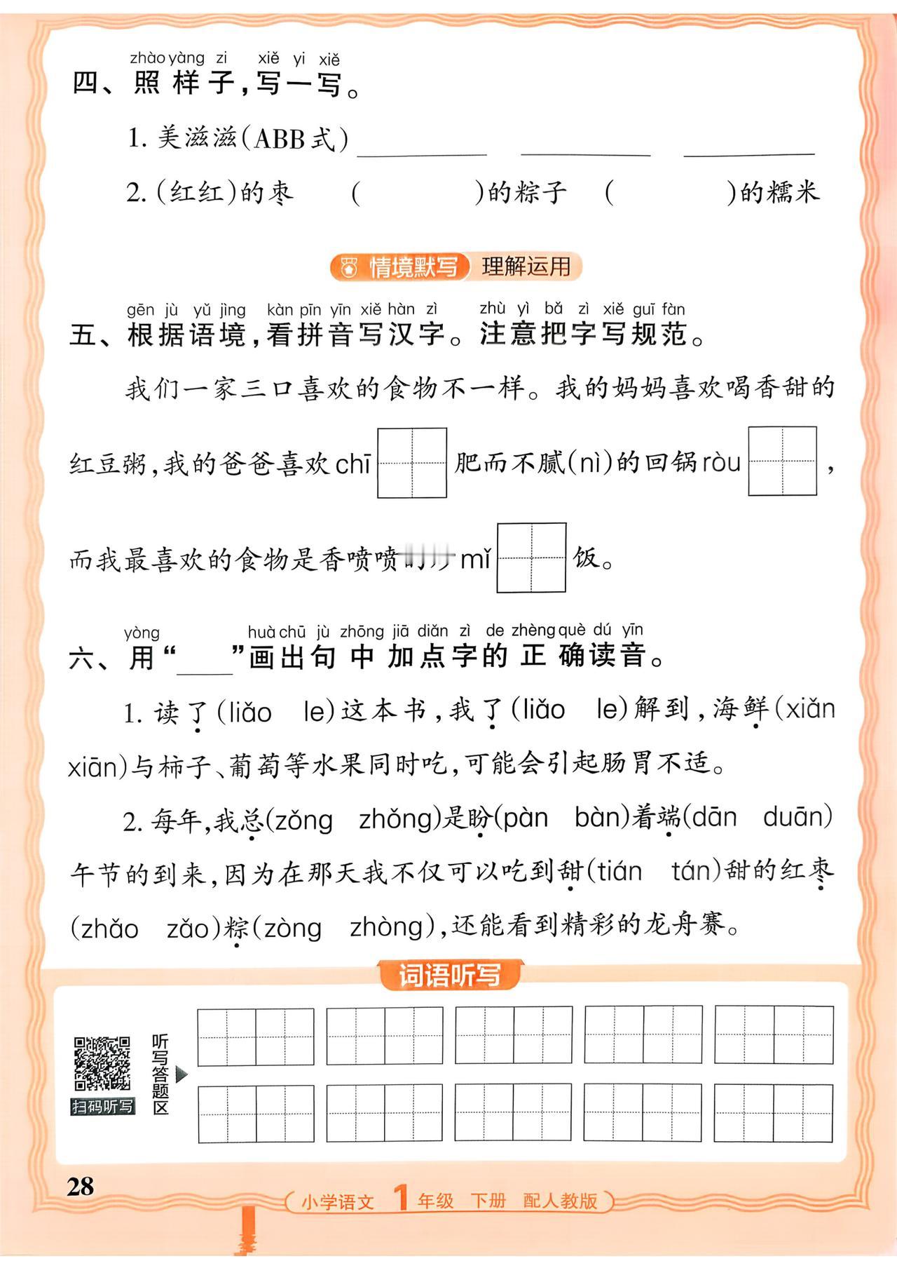一年级下册语文期中复习,看拼音写词语、量词、四字词语、特殊词语、多音字组词、近义