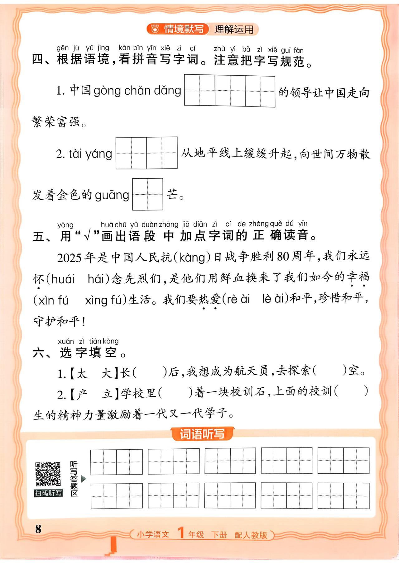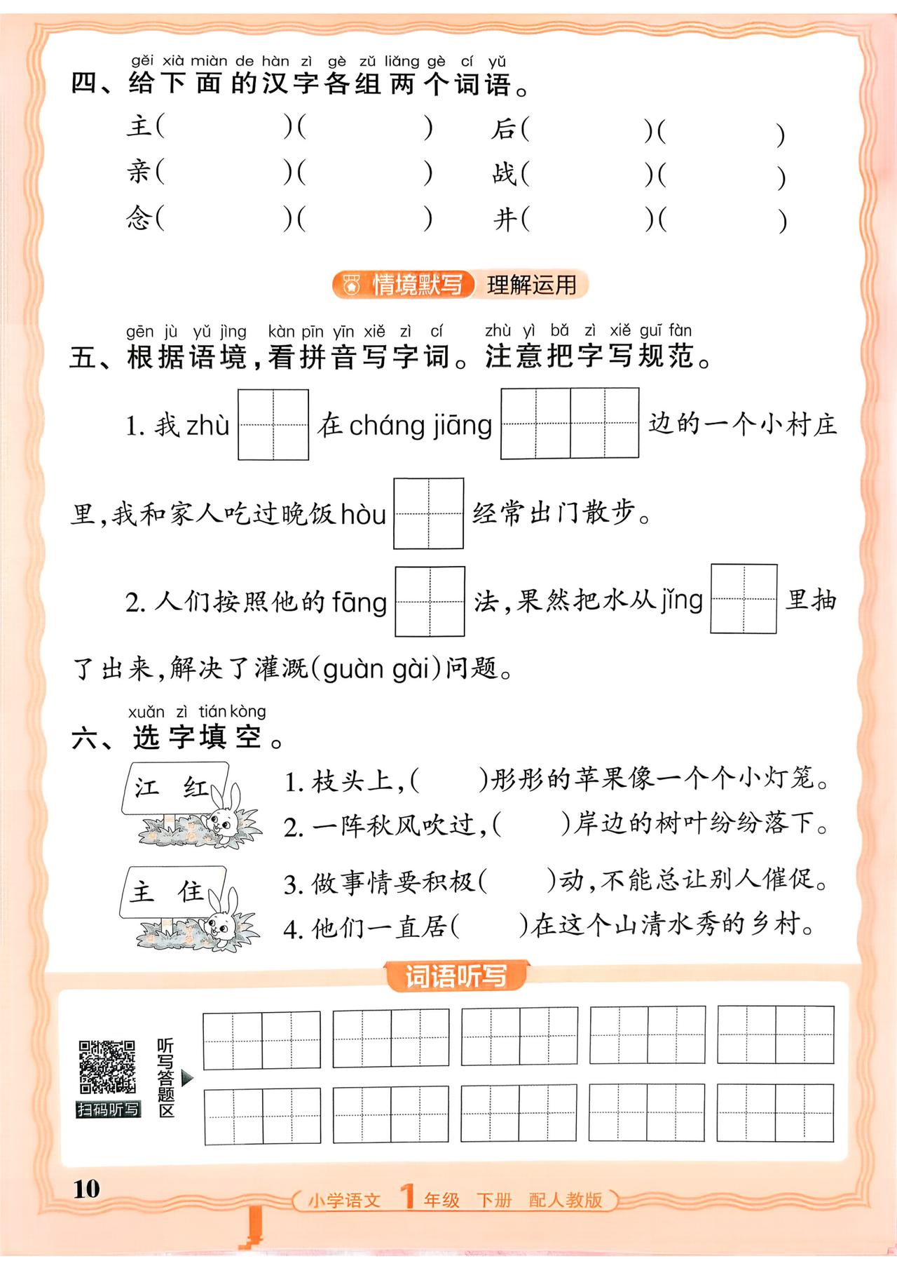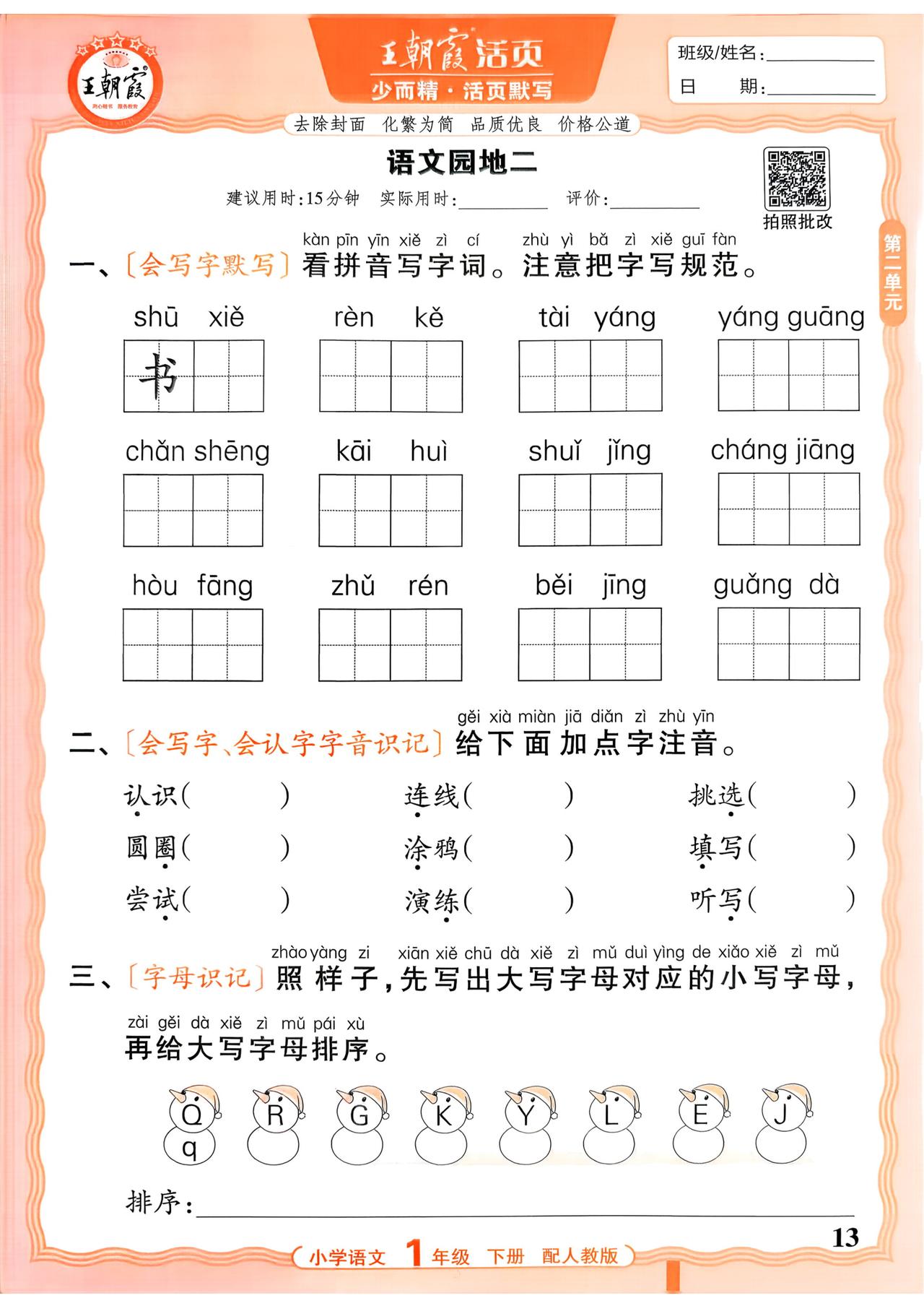 26春一年级下册语文,第二单元基础知识活页默写+参考答案,收藏备用