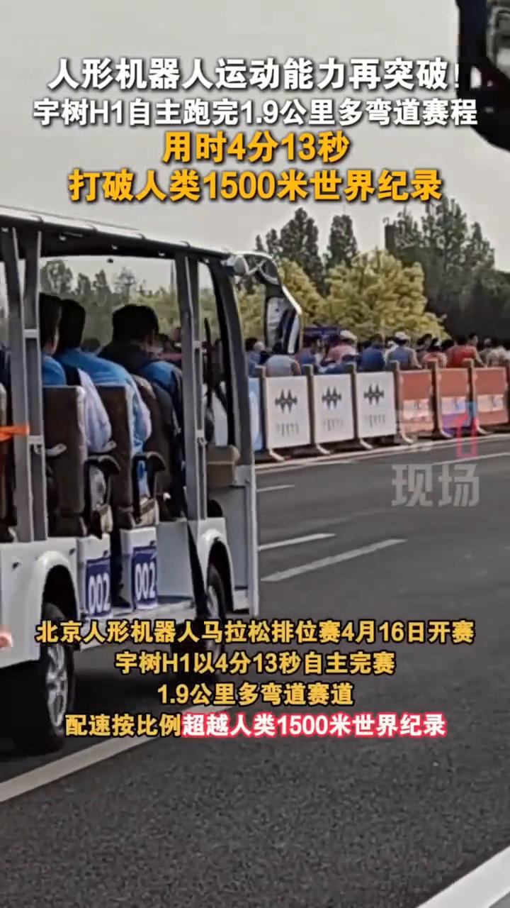 人形机器人运动能力再突破!宇树H1自主跑完1.9公里多弯道赛程,用时4分13秒打破人类1500米世界纪录。 4月19日,北京。人形机器人运动能力再突破,用时4分13秒。北京人形机器人马拉松排位赛4月16日开赛,宇树H1以4分13秒自主完赛,1.9公里多弯道赛道,配速按比例超越人类1500米世界纪录。第一个机器人出发了,跑得比人还快。