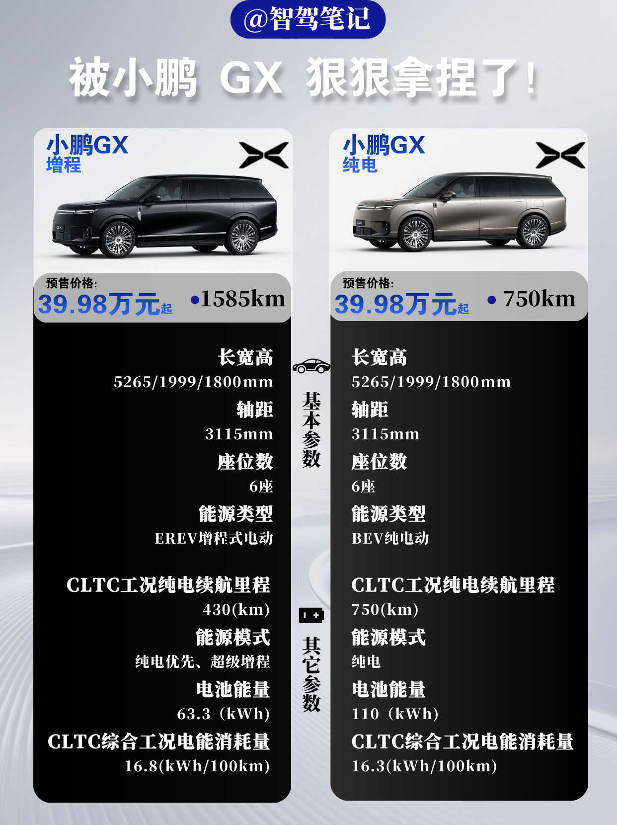 被小鹏GX的气场戳中了!39.98w起的大型六座SUV,增程和纯电版本都很有看点~ 增程版:综合续航1585km,长途出行完全没焦虑,日常通勤用电也很省,电池安全和快充表现都很能打,适合经常跑长途的宝子~ 纯电版:续航750km,快充12分钟就能补能525km,日常城市通勤和短途出游都很合适,配置和用料也很豪华~ 三种内饰风格可选,大空间六座布局,不管是家用还是商务都很有排面。选哪个版本,还是看自己的用车场景和偏好啦~