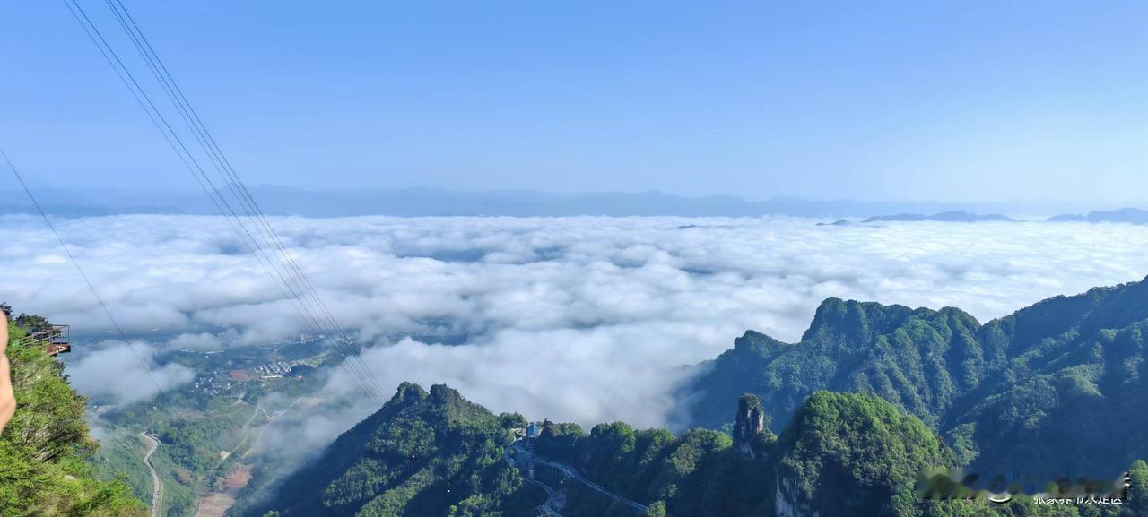 乘坐索道穿云而过,脚下是若隐若现的99道弯通天大道,群峰如岛屿浮出“海面”。天门洞前云气蒸腾,“天门吐雾”奇观再现,云雾从洞中翻涌而出,仿佛山在呼吸 。 站在鬼谷栈道,云浪在脚下奔涌,青松刺破云层,空气清新湿润 。午后云雾渐散,光影勾勒出山峦轮廓,随手一拍皆是壁纸级画卷。这份春日云海,是天门山独有的浪漫与壮阔。