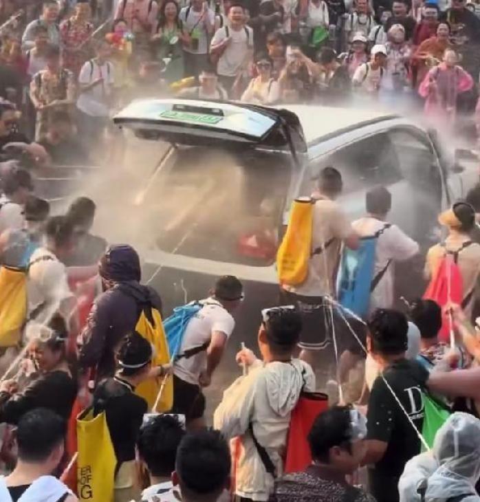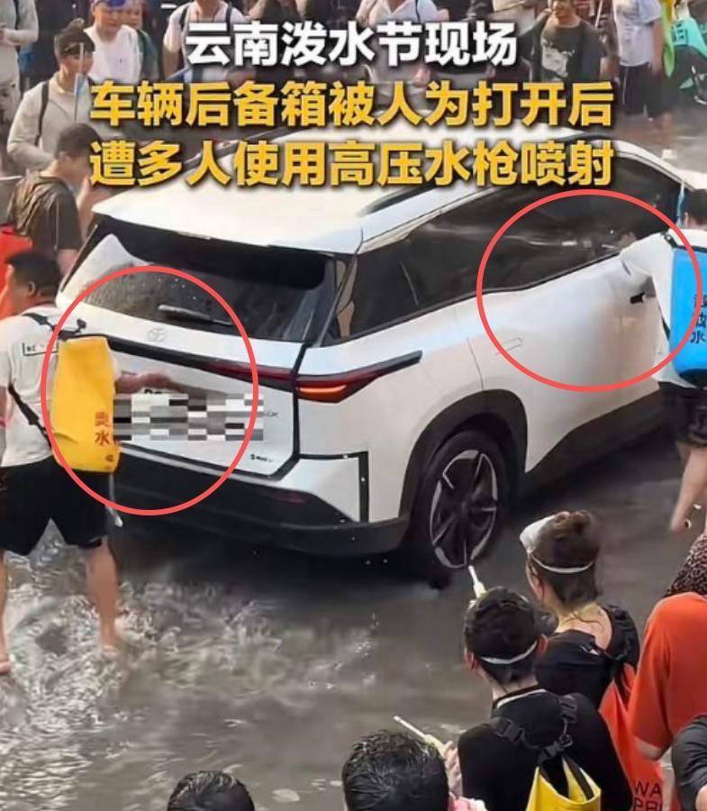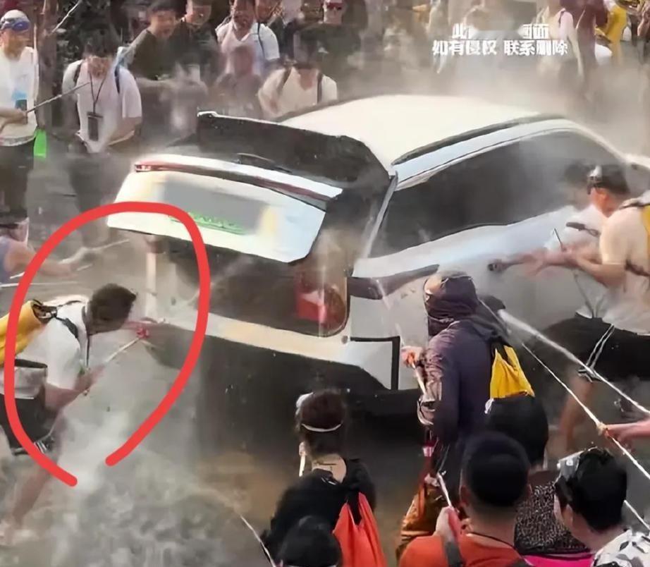 一群人借着民俗的名义,硬生生把一辆行驶中的新能源车变成了“水帘洞”,气得车主全家在车内发抖。 看着视频里那两个强拽车门、往车里猛灌水的身影,我才深刻体会到,有些人的恶,真的会披着节日的外衣肆无忌惮。 就在4月14日,西双版纳正值一年一度的泼水盛宴,本该是清水传情的浪漫时刻。 可对于驾车经过的一对外地夫妻来说,这一天却成了他们挥之不去的梦魇。 他们带着60多岁的双亲,本想领略一番彩云之南的风情,却在进入闹市区后被黑压压的人群死死围住。 你要知道,这些游客并非参与者,他们只是路过,车门甚至都没来得及落锁。 这种“疏忽”,竟成了那些围攻者眼中可以随意践踏的“入场券”。 画面中,一名身背黄袋子的男子率先发难,他像发现猎物一样冲到车尾,蛮横地拉开了后备箱。 紧接着,另一名蓝衣男子如法炮制,死死拽住后座车门,凭着一身蛮力强行扯开。 一瞬间,冰冷的清水如同瀑布般涌入车厢,车内原本干燥的内饰瞬间被彻底浸湿。 高压水枪的声音在狭小的空间里轰鸣,伴随着车内老人的惊叫和孩子不知所措的哭喊。 即便车主夫妻拼命哀求、大声呵斥,这群围攻者依旧笑得放肆,仿佛在进行一场极其正义的“洗礼”。 更可怕的是,这是一辆精密的新能源电车,大量的清水顺着座椅缝隙直接灌入了底盘和中控电路。 电车最怕的就是涉水,尤其是这种全方位、无死角的“灌顶”,极易引发线路短路甚至电池爆燃。 直到车主强行踩油门突围,这群人才意犹未尽地散去,留下满目疮痍的车辆在路边冒起青烟。 事后检修显示,车辆多处电路因进水出现短路,内饰地毯全部泡废,维修成本起码是万元起步。 面对镜头,车主妻子声音颤抖,她怎么也想不明白,为什么象征吉祥的圣水,会变成毁坏财物的凶器? 更令人心寒的是,事件发酵后,竟然还有人在网上冷嘲热讽,说“玩不起就别出门”。 这种逻辑简直荒谬透顶,难道穿了救生衣就该被推入深海,路过泼水节就该被强行开门洗车? 话说回来,这不是在泼水,这在法律上叫作“故意毁坏公私财物”,在道义上叫作“集体流氓行径”。 很快,官媒新京报也下场怒批,直言这种行为早已背离了传统文化的本意,完全是在违法犯罪的边缘试探。 西双版纳文旅部门随后紧急重申,严禁使用高压水枪,严禁对过往车辆和老人孩子进行攻击。 但那两名带头强拉车门的男子,至今仍未站出来给车主一个正式的道歉,甚至还偷偷关了社交账号。 据专业法律人士分析,这种无视他人意愿、强行侵入私人空间的行径,已经涉嫌寻衅滋事。 根据我国相关法律规定,毁坏公私财物数额较大的,最高可处三年以下有期徒刑。 更硬核的细节在于,车损险通常不覆盖这种人为导致的灌水理赔,车主这笔钱大概率得自掏腰包。 所以,车主态度异常坚决:不要赔偿是不可能的,维权到底才是对这股歪风邪气最好的回击。 一个地方的文旅招牌,建立起来需要几十年,但要毁掉它,只需要几个借酒疯泼水的“巨婴”。 西双版纳的清泉是用来洗涤尘埃的,不是用来掩盖教养缺失和法治意识淡薄的。 如果这种行为不被严惩,未来的泼水节,谁还敢开窗,谁还敢带着家小前往? 这种所谓的“狂欢”,本质上是对弱者的霸凌,是对公共秩序赤裸裸的挑衅。 文明的底线不应被节日的喧嚣所淹没,法律的威严更不该被一句“开个玩笑”所消解。 我们期待相关部门能给车主一个公道,也给那两名“显眼包”一个应有的教训。 别让那一桶桶本该清凉的祝福,凉了四方游客的心,也毁了千年的民俗传承。