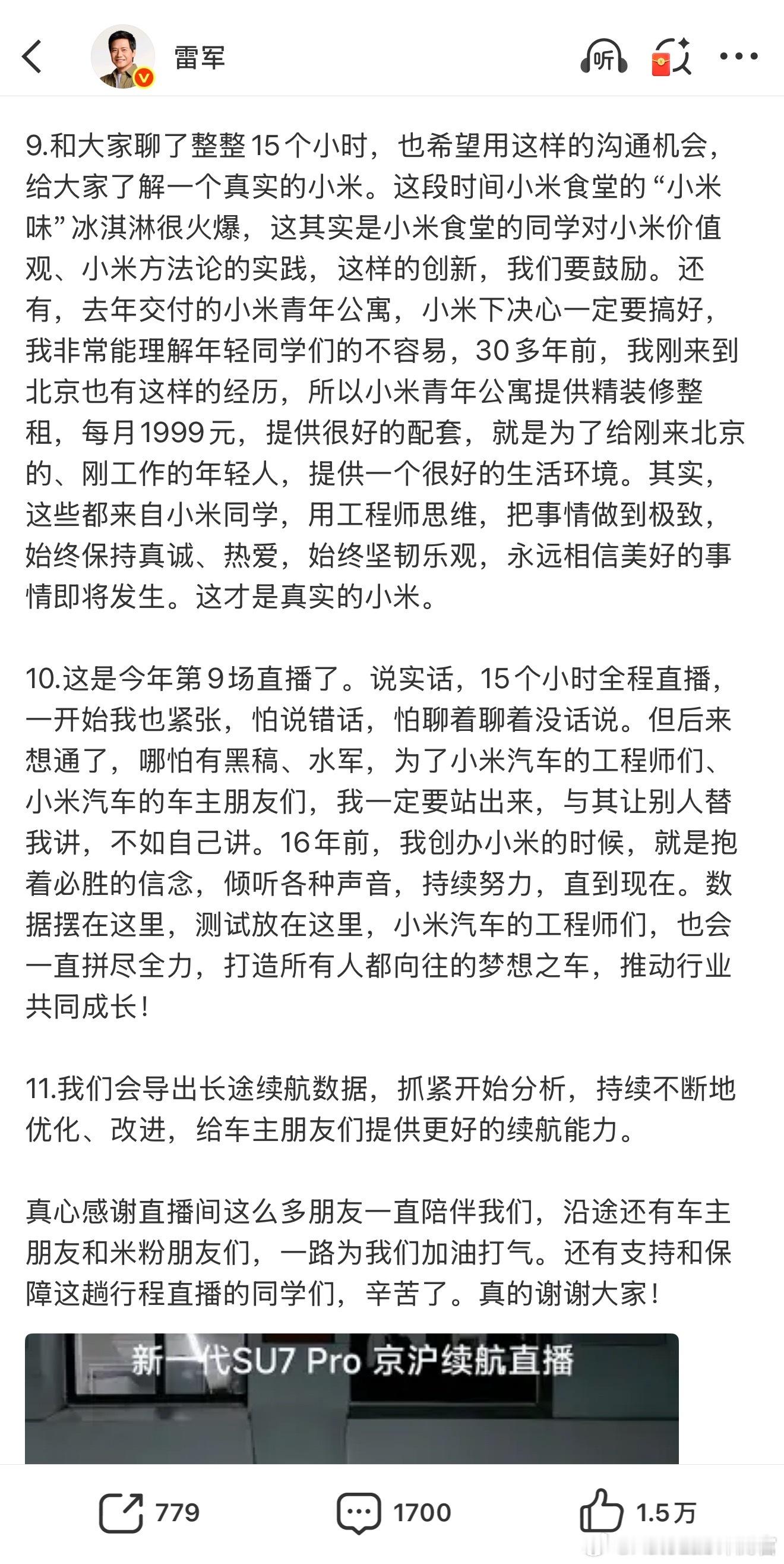 前两天从北京开到上海的续航测试竟然已经是雷军今年的第九场直播了太拼了