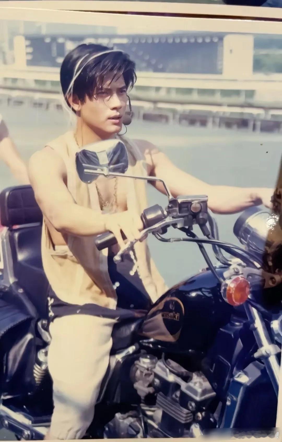 郭富城早年拍摄的光阳机车广告画面,这个广告让他在1990年一炮而红。