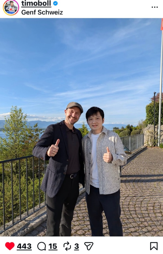 波尔分享和樊振东的照片:和我的好兄弟樊振东一起,在日内瓦度过了一次超棒的短途旅程。