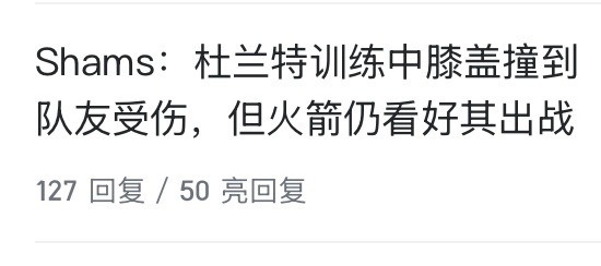 shams:KD训练中受伤,但火箭仍对其出战G1保有一定乐观情绪