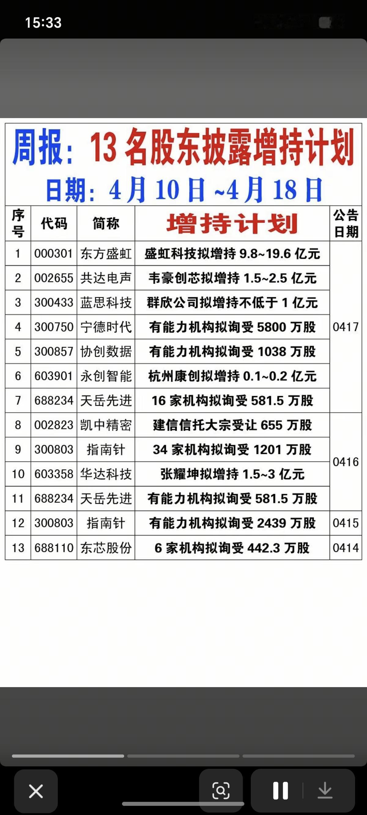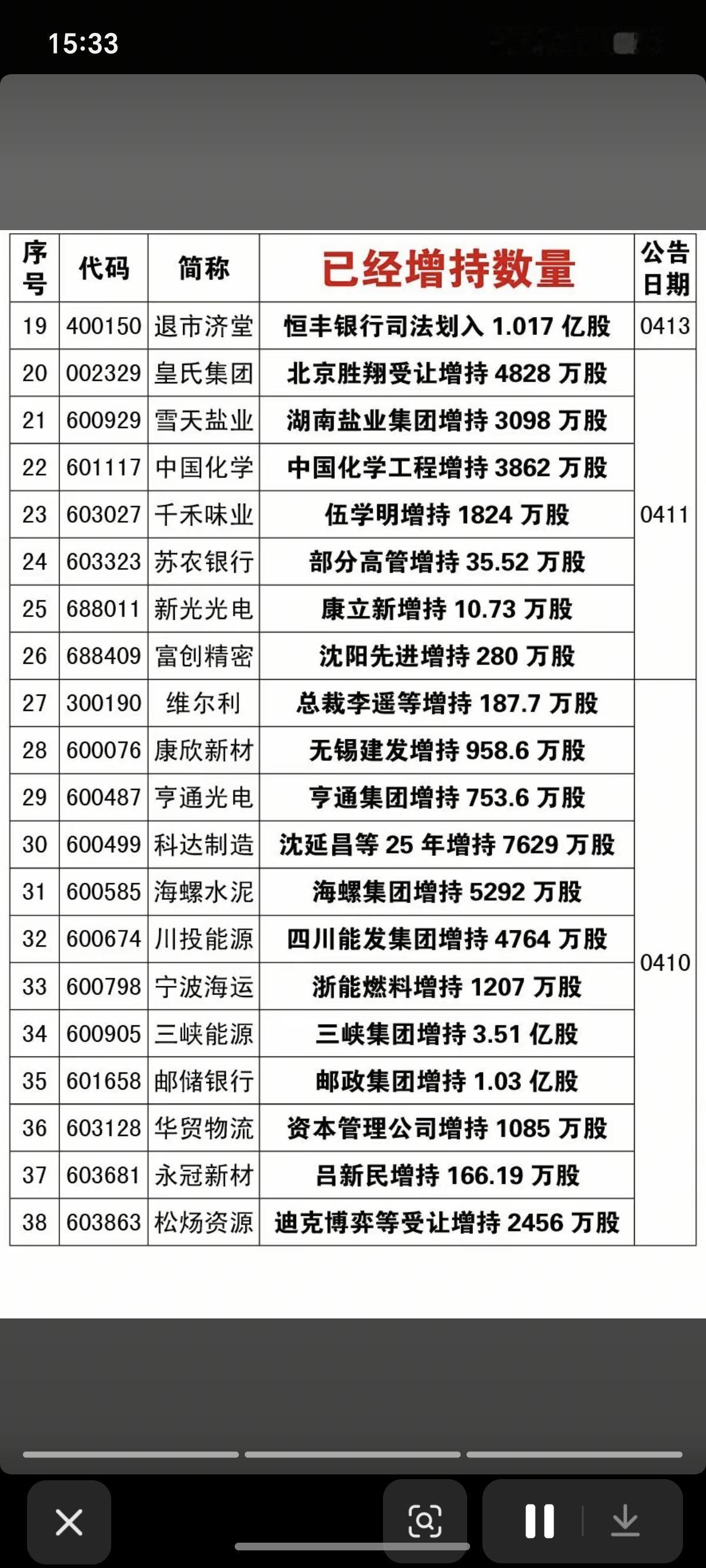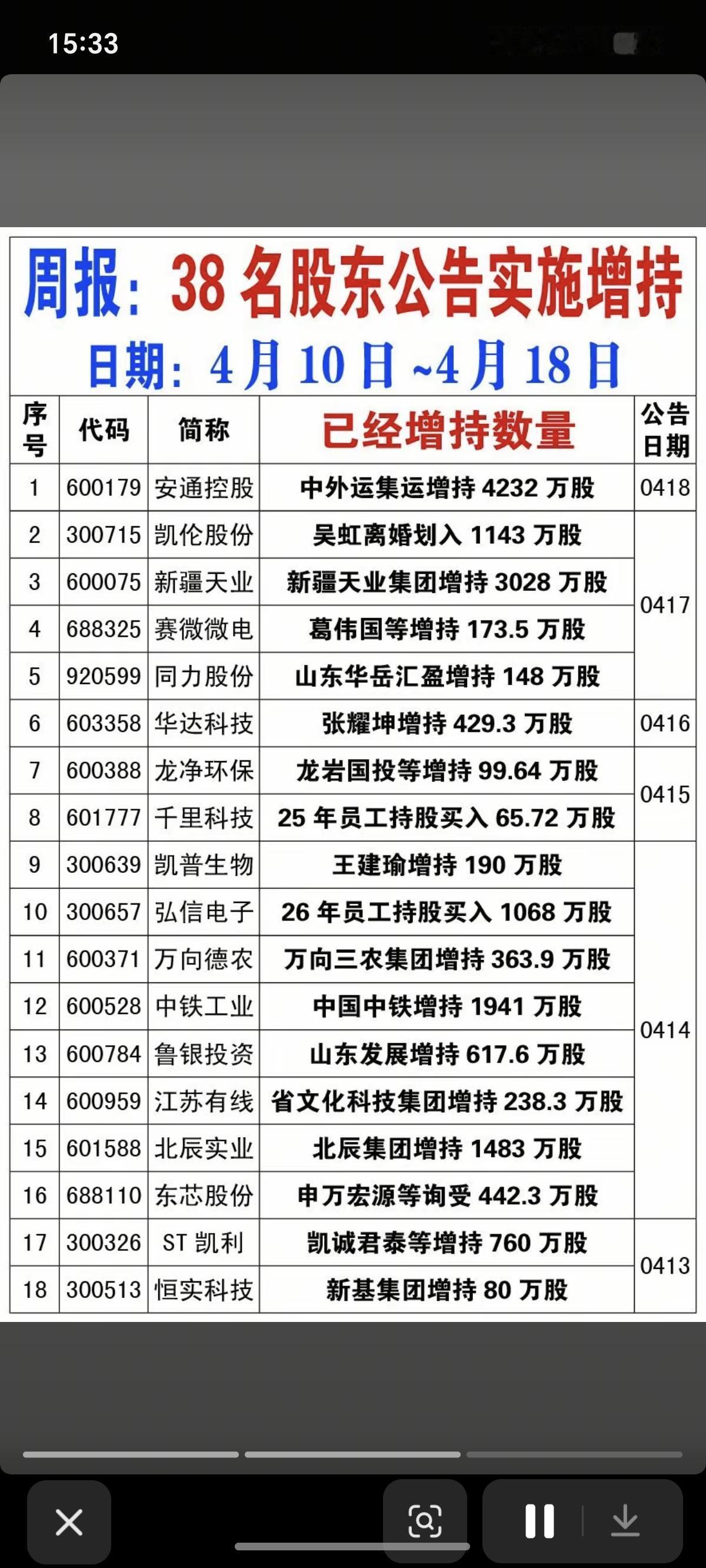 4.19周日 上市公司股东:增持总结! 本周: 13家公司股东披露增持计划 38名股东,已实施增持 低位增持股,可以跟踪。
