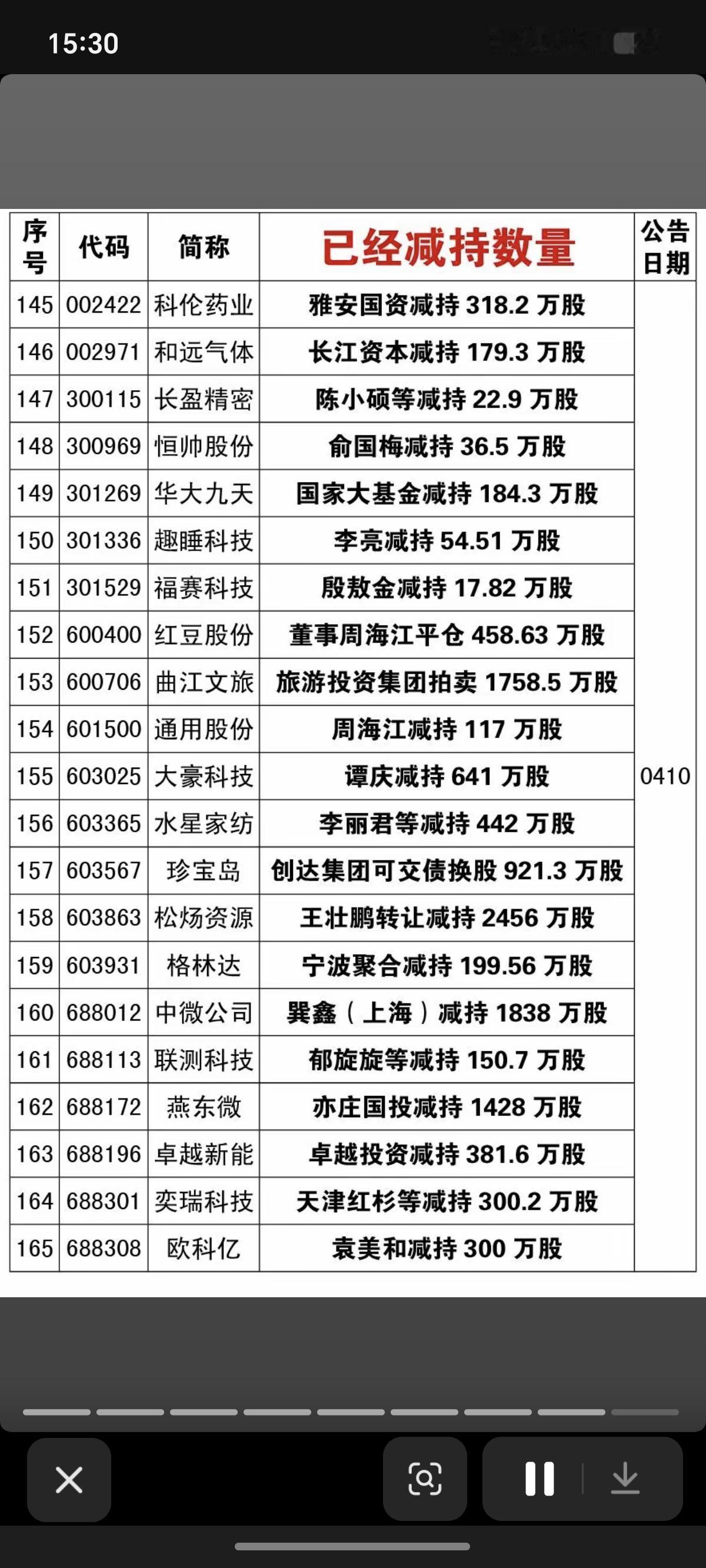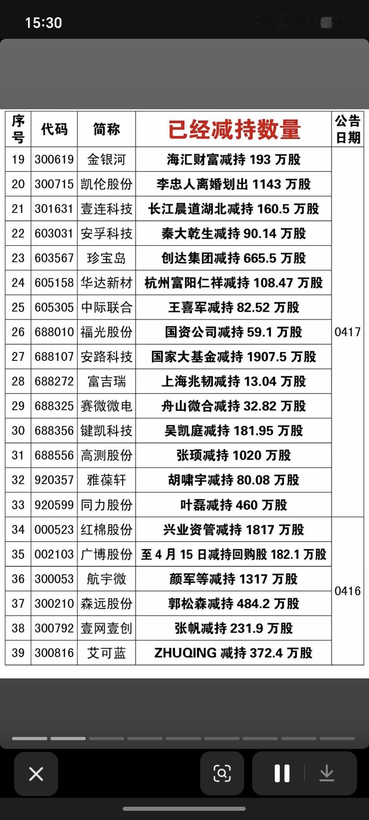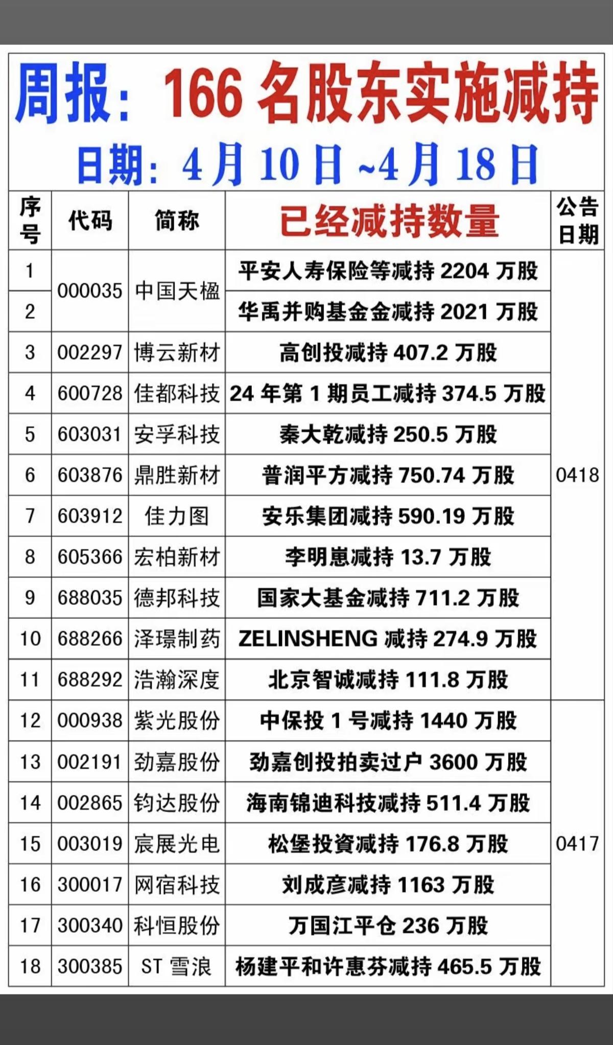 4.19周日 本周166家公司股东实施减持 德邦科技:国家大基金减持711万股 国芯科技:国家大基金减持336万股