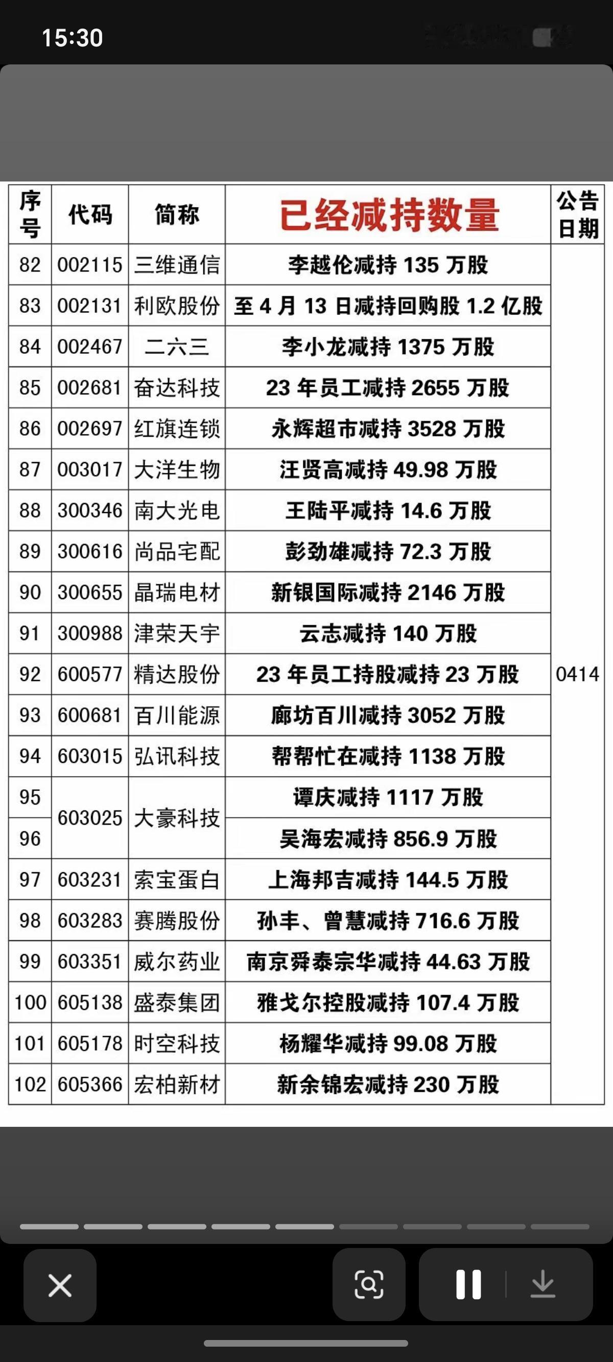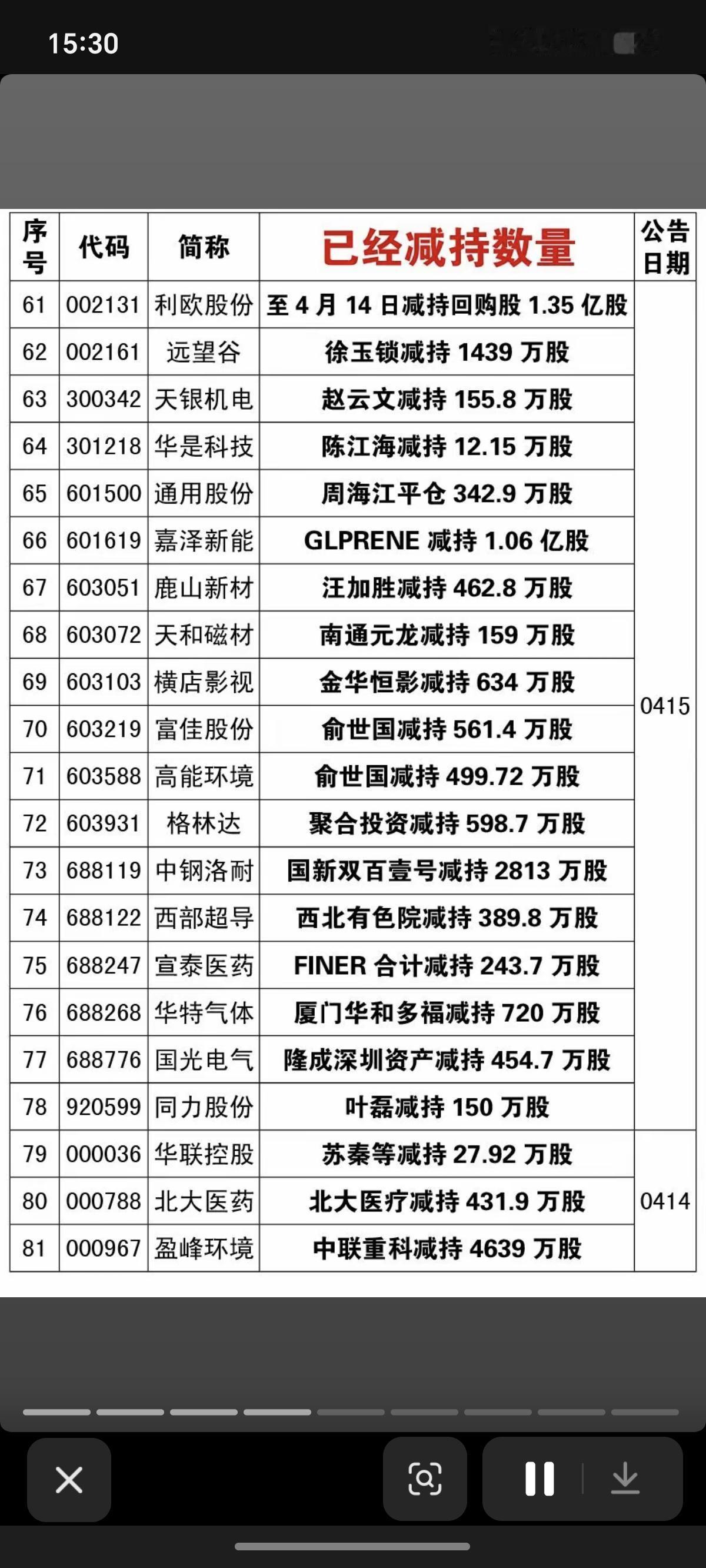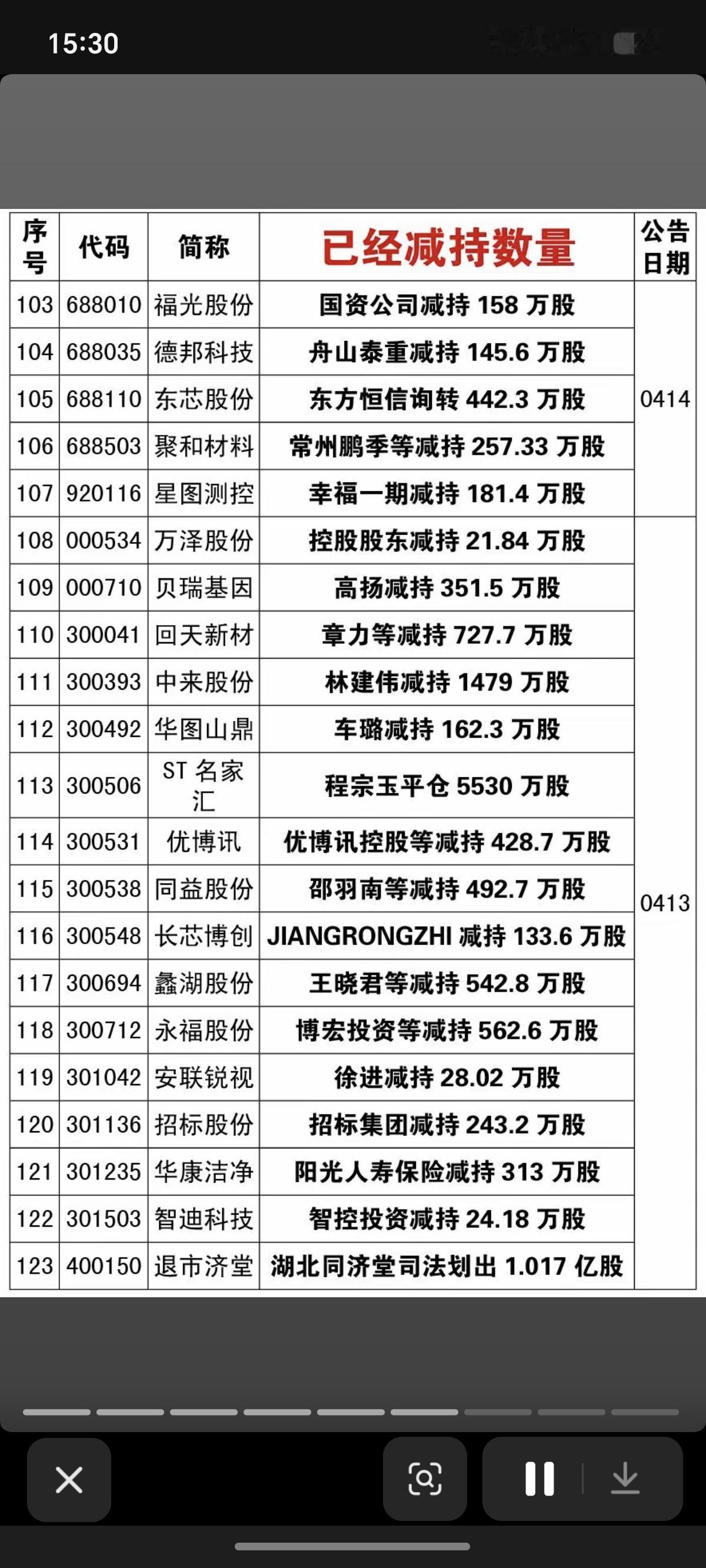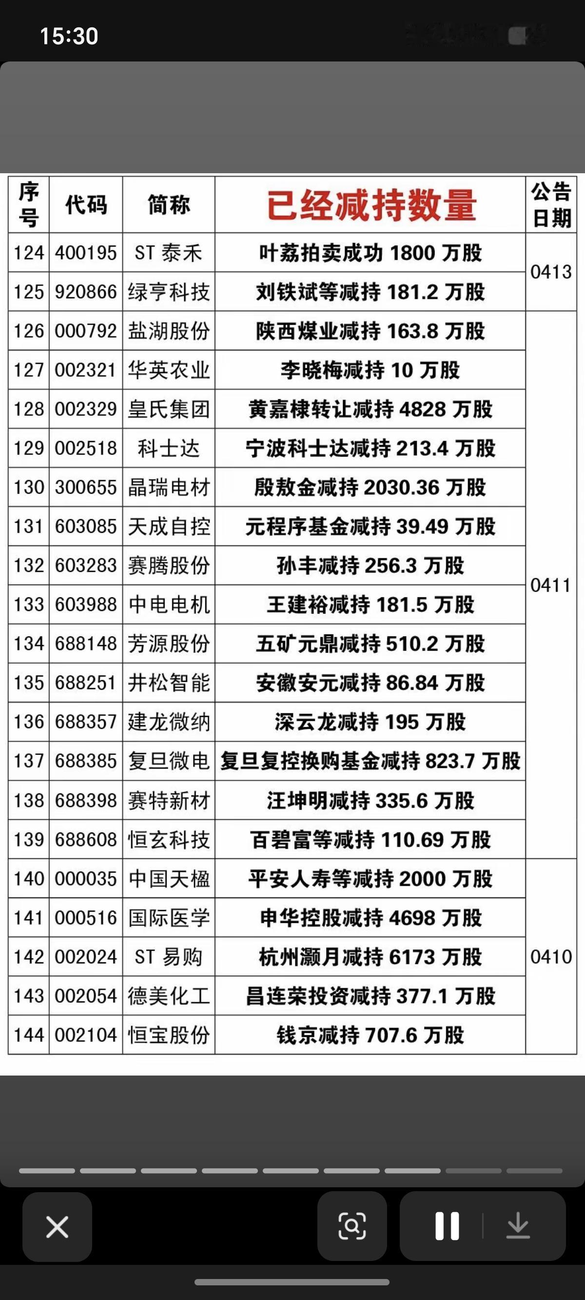 4.19周日 本周166家公司股东实施减持 德邦科技:国家大基金减持711万股 国芯科技:国家大基金减持336万股