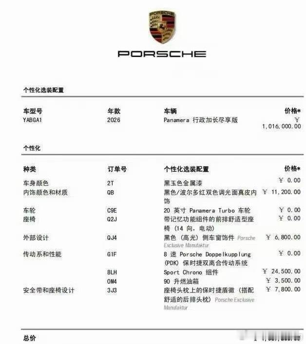 保时捷 帕纳梅拉 行政加长 尽享版 26款 指导价1069800元全款裸车 981,869元 店内保险 卖全国
