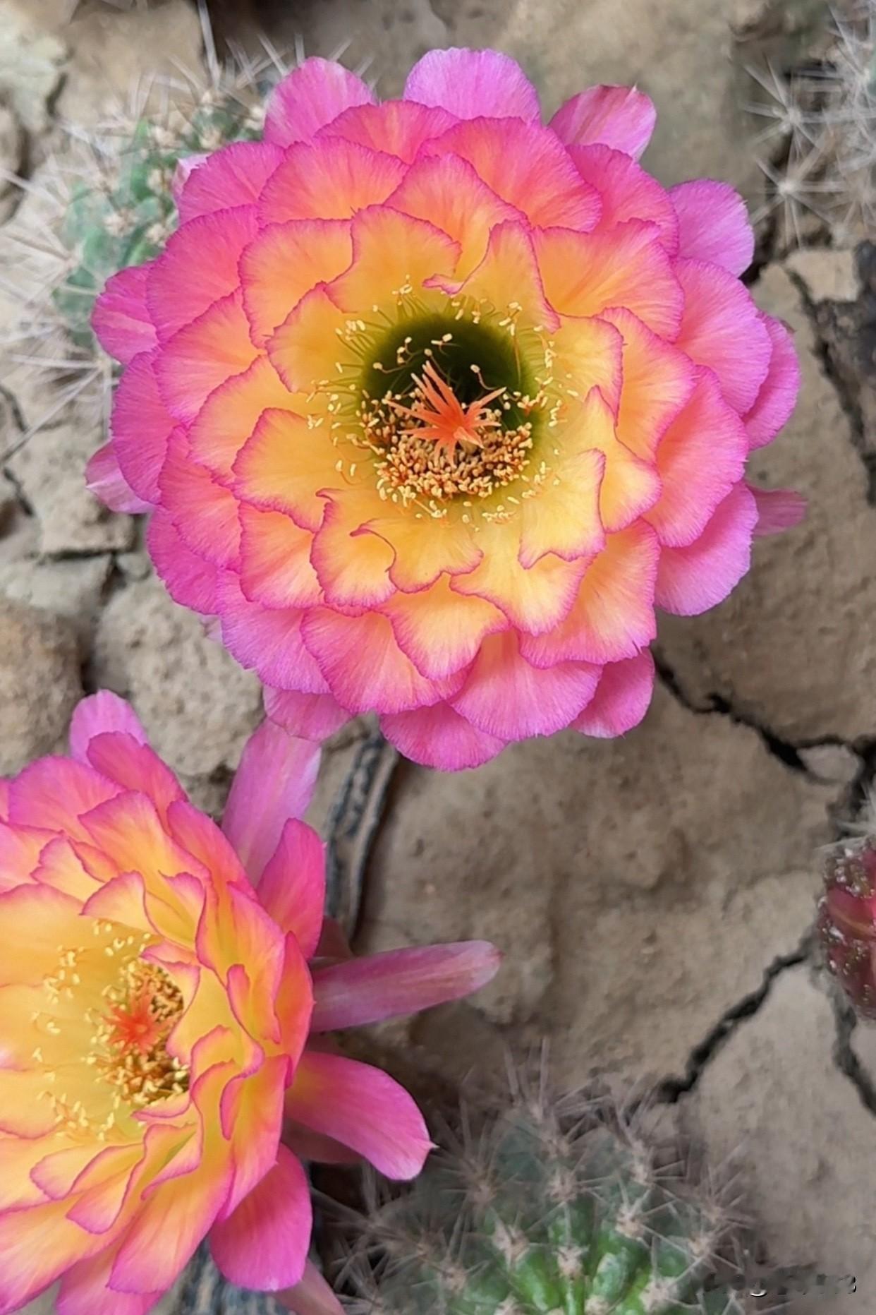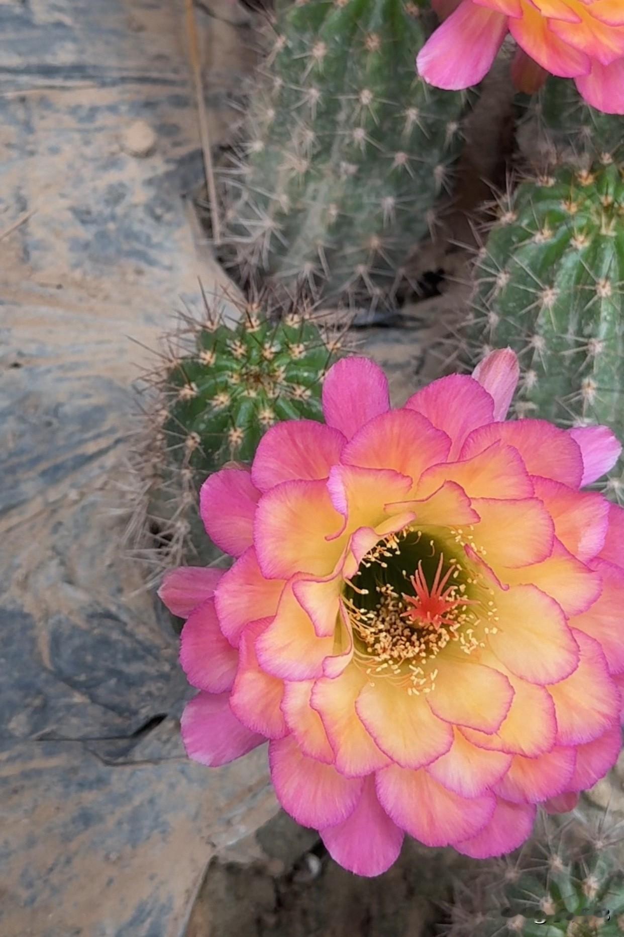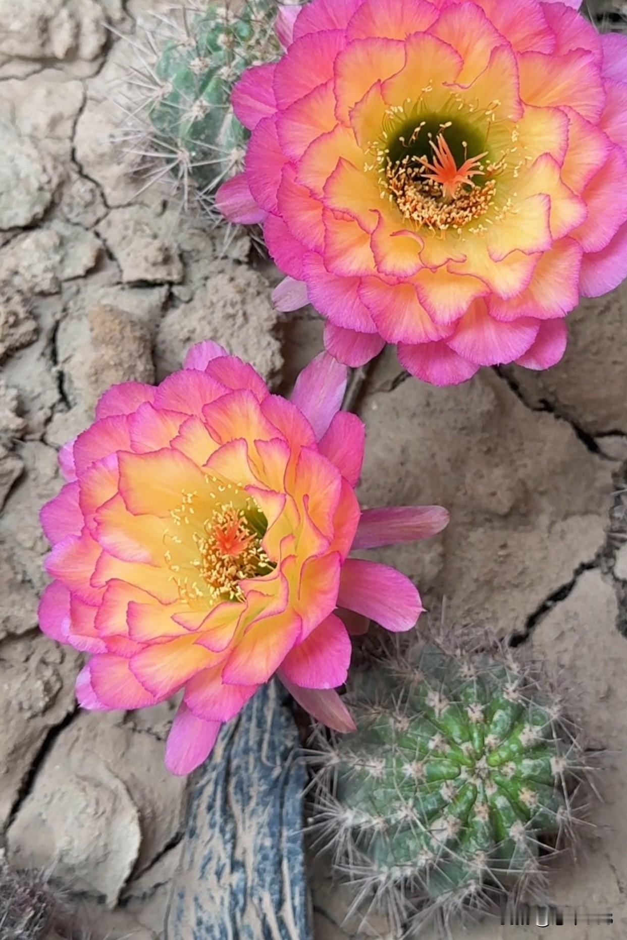 你见过仙人球开的花吗?今日花𣁽,毛花柱苏乞儿仙人球开花,花朵美艳,独一无二的花色,画家也画不岀来了美丽,花色很丰富多彩,还有描边,花朵有一种立体美感。 毛花柱苏乞儿是一个巨难养的品种,就算是种毛花柱的顶级高手,也因为苏乞儿长大很慢,急得满头大汗,它的球型很小,比较有些彩草仙人球还要小巧,开花也很少,是一个很佛系的仙人球,球和花都很独特,让人过目不忘。 想要让苏乞儿毛花柱开花,秋天就要断水,冬天要春化,过好年春天的时候搬出去全天晒太阳、不要碰水和肥料,速生化肥更不要碰,看到图上的土壤干旱的程度,一定要记住,毛花柱越折磨越开花。 这些都是我个人的观点。