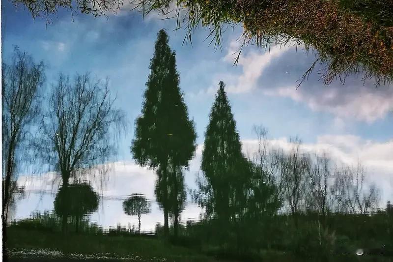 水中倒影的风景真的绝美!就像我去公园散步,在湖边看到一对鸳鸯戏水。它们时而把头扎进水里觅食,时而并排漂在水面,亲密无间。阳光洒在湖面波光粼粼,它们的羽毛也闪闪发亮。这水中的倒影,如诗如画,怪不得说鸳鸯是爱情的象征,看着它们心里都暖暖的。 还有上海闸北公园,开阔的湖面被霞光铺洒,金白的倒影随波轻漾,璀璨极了。岸边错落的楼宇轮廓倒映湖中,光影交织,和粼粼波光相映成趣,静谧又绚烂,仿佛一幅天然的画卷。水中倒影,总能带来别样的视觉享受。