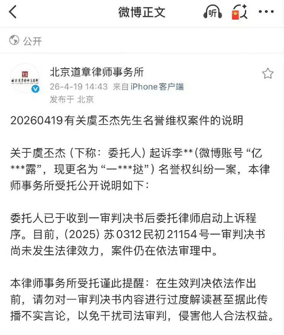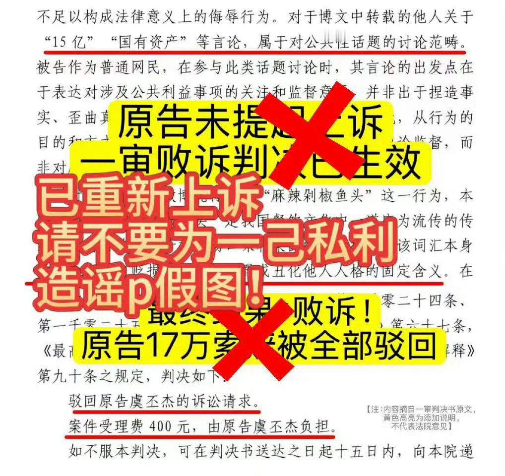 非最终判决结果,请勿对一审判决书进行过度解读甚至造谣传播不实言论!
