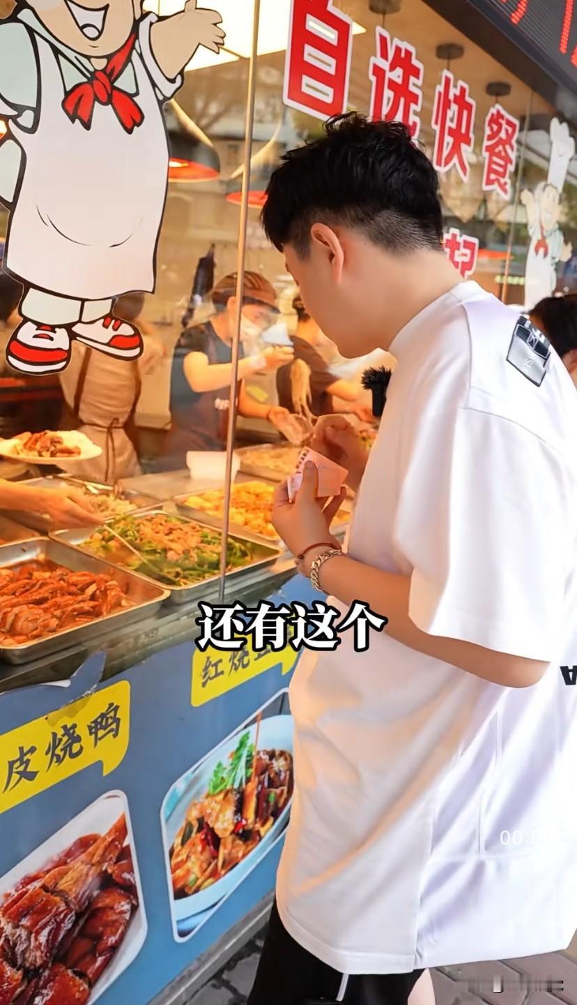 美食达人刘雨鑫来到广东清远,走进一个茶餐厅,看到牌子上写着自选套餐:8元3个肉,10元4个肉,12元5个肉,15元6个肉,还送一素菜和汤,饭任吃。菜都是现烧现炒的,有白切鸡、烧鸭、各式小炒,二、三十个菜式任选,他们三个人每人点了一份8元的,边吃边赞:8元能吃到烧鸭,3个肉,味道这么好,管饱,真挑出毛病。 刘雨鑫探店可真实在,也不挑,什么店都探,美食本来就如此,贵有贵的吃法,便宜的也能吃到好的味道,所以,他能发掘并捧红莫氏鸡煲,并非偶然。