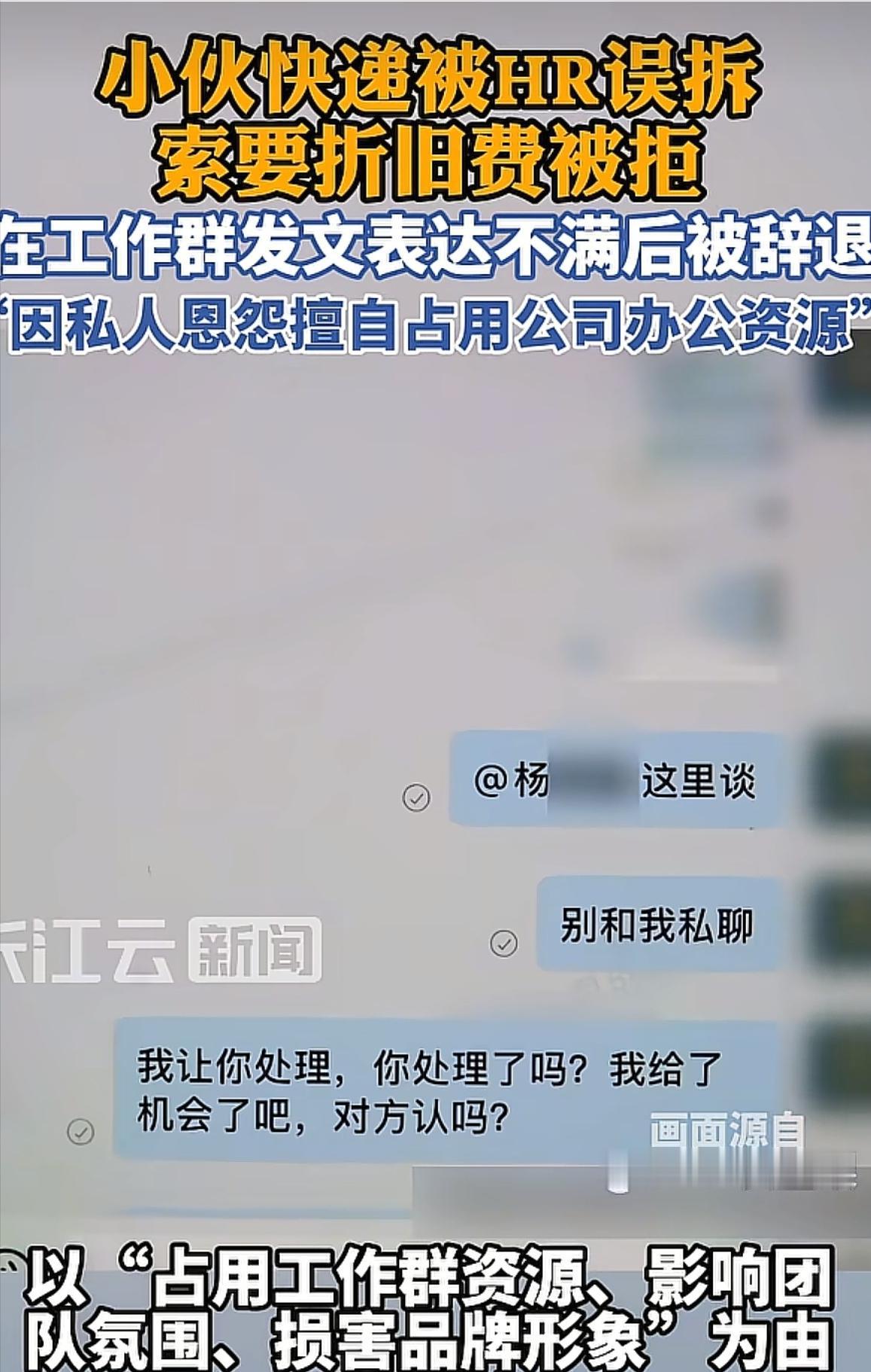 浙江杭州,男子还在试用期,他把8000多的手机发到了公司,结果被人事给拆了,对方不仅拆了快递盒子,还拆了手机塑封,盒子上还沾了油污。男子找到人事,对方却称以为是公司给她买的手机,她是误拆,并拒绝赔偿。男子气不过,把事情发在工作群里,结果公司以私人恩怨,上班时间在群里争吵,影响工作等为由,把男子给开除了,男子彻底懵了! 那个盒子上的油渍,像是某种无声的嘲讽。 望着工位上那台零件外露、破损散乱的 vivo 手机,小李满心绝望。全新的封膜被撕掉,原装快递盒不见踪迹,只剩下盒面满是脏污油渍。 自己斥资八千多购入的送礼新机,现如今连售后退货都已经完全行不通。 故事的起因在今年 3 月 30 日。 小李离开成都、定居杭州已有两年,从事设计岗位,熬过三个月试用考察,本该迎来顺遂光明的职场前路。 为送出一份拿得出手的礼物,他网购了这部昂贵手机。小李从成都来杭州两年,做设计,试用期在公司里熬了三个月,前途本该一片光明。他想着给朋友送份像样的礼物,就网购了这部手机。 谁也没想到,这部手机会让他丢掉工作。 4 月 6 号正午,新手机快递如期送达。 彼时小李正忙于手头工作,等匆匆赶到前台取件时,包裹早已被私自拆开。 动手的是公司 HR 李女士,二人只是恰巧同姓,手机号尾号全然不同,收件人明明白白写着小李,压根算不上误拿误拆。 面对质问,李女士却理直气壮辩解:近期公司正为她配发工作手机,看到前台摆放的盒子尺寸相近,便误以为是自己的包裹直接拆开,发现拆错之后,随手就将物品丢弃了。 拆完发现不对,又给扔了。 封膜撕了,盒子扔了,现在一句“误拆”就想把事情揭过去? 小李找她理论,要求赔点折旧费算了。 李女士直接把话撂在桌面上:手机又没坏,凭什么要我负责?有本事你去退。 可小李退不了啊。这已经是换过的货了,卖家早就不支持七天无理由退货,如今封膜被撕,包装破损,退货渠道彻底封死。 他报警了。警察来了,李女士还是一副“我没错”的姿态。 接连的变故让小李彻底不知所措。 他将整件事情的完整经过,如实发到了企业工作群中,只希望各位同事来公正评判对错。 全程他没有争执谩骂,只是冷静客观地还原事实。 公司总部的人坐不住了。杨先生私信他:这是私事,别在群里发。 小李简短回复:既然所有人都置之不理、无人出面解决,那我只能选择在群里自行发声维权。 然后公司直接把他开除了。 公司给出的开除借口看似正当:小李工作日占用公共工作群、多次报警处理纠纷,损害企业对外形象。以试用期为由,直接解除合约,且不支付任何经济赔偿。 这可能吗?试用期就能随便开除?显然不能。 《民法典》第1165条写得清清楚楚:行为人因过错侵害他人民事权益造成损害的,要承担侵权责任。私自拆他人快递,侵犯隐私权,侵犯财产权,造成损失就该赔偿。 李女士的“误拆”说法根本站不住脚。 快递单上有姓名、有电话尾号,认字的人都能看出这不是自己的东西。 作为HR,连这点基本的辨识义务都做不到,还理直气壮拒不赔偿——这哪里是误拆,分明是把别人的东西当成自己的,随意处置。 公司开除小李的理由更是荒谬。 报警是公民维权的正当手段,什么时候成了“给公司形象造成恶劣影响”的罪状?在工作群里陈述事实,怎么就变成了“干扰同事”?小李找过李女士,找过领导,报警也没解决问题,他才被迫把事情发到群里——这叫什么?这叫投诉无门之后的自救。 公司不想着怎么解决HR侵犯员工权益的问题,反倒急着把“麻烦”解决掉。 这种处理方式,说好听点是懒政,说难听点就是在纵容侵权。 更让人寒心的是小李的处境。他只是个试用期的新人,面对的是掌握人事权力的HR。 他在公司里小心翼翼,生怕出错影响转正,结果呢?因为一个快递,连工作都丢了。 现在小李提出了五点诉求:违法解除赔偿金、如实注明原因的离职证明、结清工资、补齐社保、补齐公积金。字字句句,都是法律赋予劳动者的权利。 他会去仲裁。法律怎么判,他就怎么认。 这个故事看起来是一个快递引发的血案,实际上折射出职场里那些不成文的规则:试用期员工天然弱势,HR的话比普通员工管用,出了事公司第一反应是捂盖子而不是解决问题。 可别忘了,规则是人定的,也是用来打破的。小李拿起法律武器维权的那一刻,就已经不再是那个“彻底懵了”的小伙子了。 至于那盒沾着油渍的手机,或许会成为某个职场案例的证物,提醒后来者:权利这东西,你不争取,就真没了。 信源:1818黄金眼