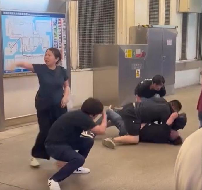 近日罗湖站发生“多人混战”!原因令人沉默……!东铁线罗湖站月台发生“多人混战”,至少有6名男子大打出因“眼神接触问题”引起!