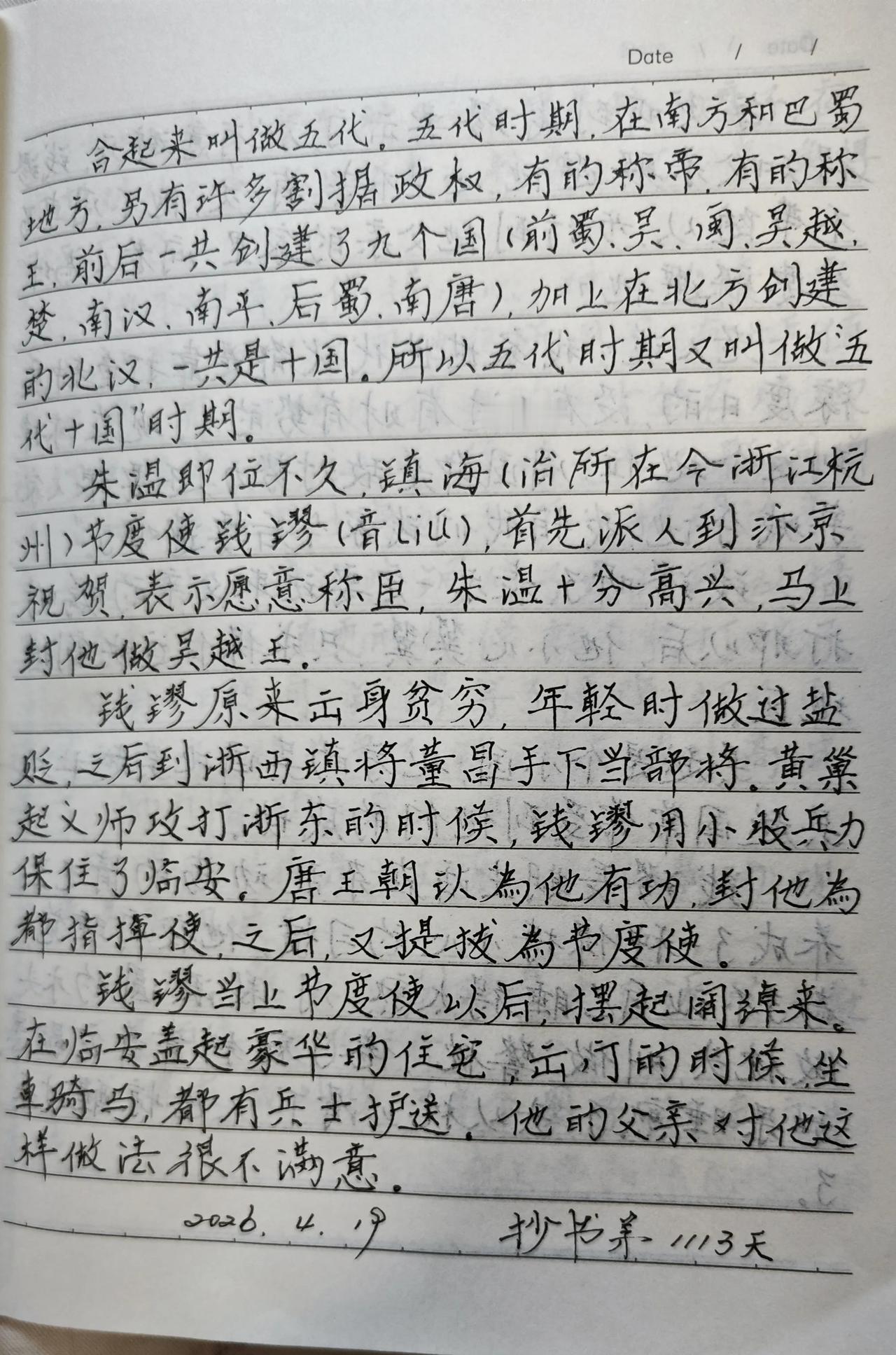 抄书第1113天! 今儿的天可不好,早上起来就灰蒙蒙的,中午看到预报说是有大风沙尘天气。这不,外面起风了,沙尘天气说来就来了。赶紧起身关窗,霎时功夫漫天黄沙,尽管是关闭了门窗,窗台上还是落了一层的土,这样的天气出不了门了,也只能呆在家里隔窗看黄沙了。 今天继续分享上下五千年《海龙王钱镠》每日抄书打卡 抄书静心