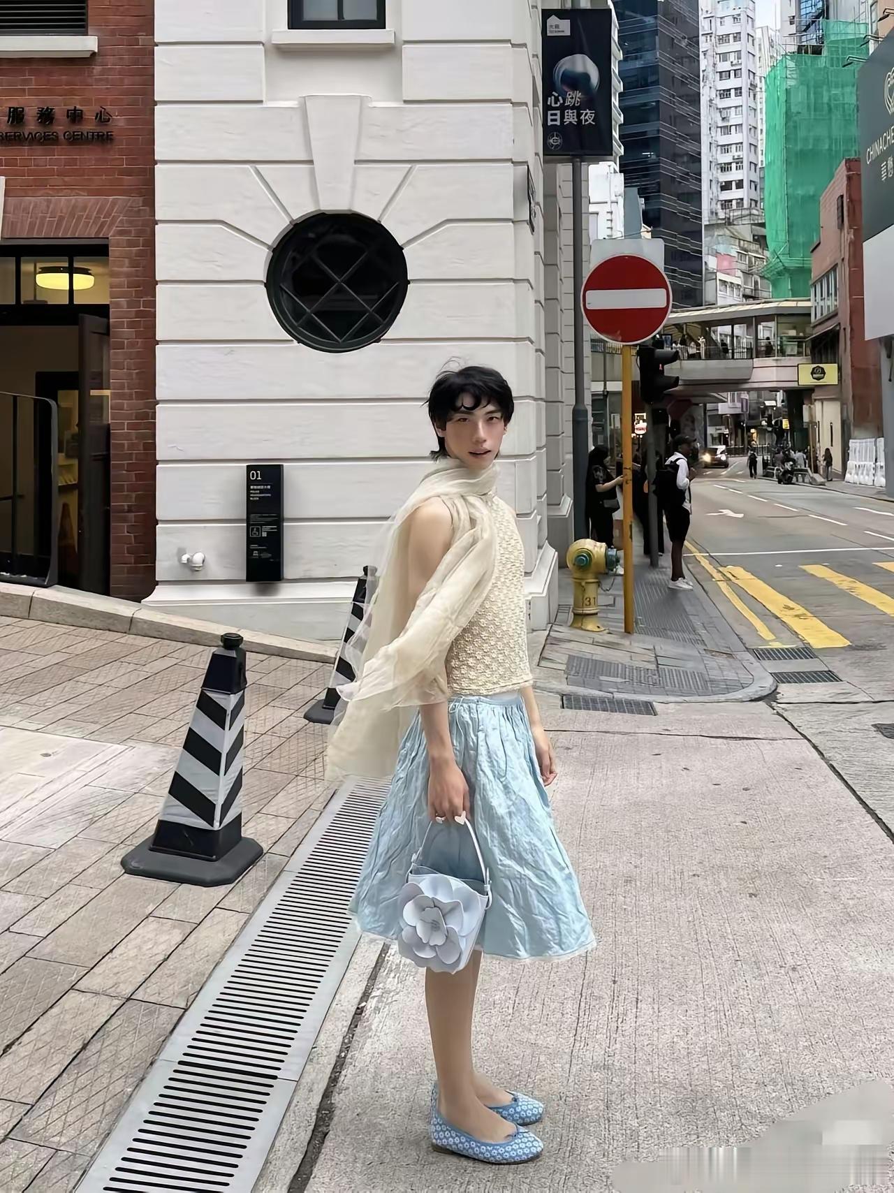 伊能静的儿子恩利再次穿起裙装,蓝色连衣裙搭配蓝色波点皮鞋,整体造型透着一股清新感。有人认为这是对个人穿衣自由和个性的尊重,也有人觉得这样的打扮挑战了大众审美。或许他是天生心理性别与身体不符,或者只是大胆尝试、追求自由表达。尽管社会包容度逐渐提升,但若是在街头见到这种装扮,仍难免感到格格不入。