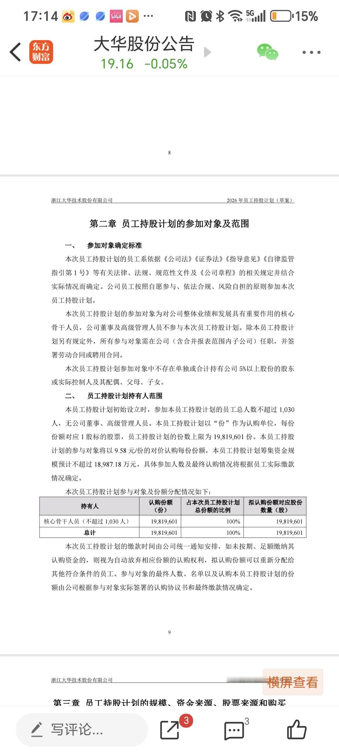 安防双雄之一,大华股份4月18日接连推出回购注销、员工持股、现金分红三大务实举措,层层兼顾各方利益,尽显管理层的厚道与格局,也让市场看到了企业稳健发展的底气。 第一:真金白银的现金分红 根据2025年年报披露,大华股份在实现归母净利润同比大增32.77%的基础上,推出每10股派发现金红利3.70元的分红方案,不搞高送转的数字游戏,实打实将经营利润回馈给全体股东。 放眼公司过往经营,大华始终保持稳定的分红节奏,持续通过现金分红让投资者分享企业成长红利,不做“铁公鸡”,把中小股东的切身利益放在实处,这份对股东的尊重,在当下市场尤为难得。 第二:回购注销股份 公司此次回购注销部分未解锁限制性股票,累计注销股份占总股本0.53%,通过缩减总股本,直接增厚每股收益与净资产收益率,被动提升每股核心价值,让存量股东的权益得到实质性增厚。 第三:全新推出的员工持股计划 本次持股计划覆盖1030名一线核心骨干,不含董监高,聚焦AI业务落地的关键执行者; 员工以9.58元/股的半价自筹资金认购,锁定期长达3年,且解锁条件直接与AI大模型产品年收入增速不低于50%的硬指标挂钩。 这份方案既用真金白银的激励绑定核心人才,解决AI战略落地的动力难题,又通过严格的业绩考核杜绝福利式激励,实现了员工、股东与公司发展的三方共赢,既不慷股东之慨,又能为企业长期发展蓄力。 点评: 从现金分红回馈股东,到回购注销增厚权益,再到员工持股绑定长期发展,大华股份的一系列操作,没有花哨的资本套路,全是兼顾各方的务实布局。 管理层既着眼于当下,让股东获得切实回报,又布局长远,为企业AI转型筑牢人才根基。 在资本市场浮躁的环境下,这样兼顾公平与发展、重视股东利益的管理层,无疑称得上厚道。